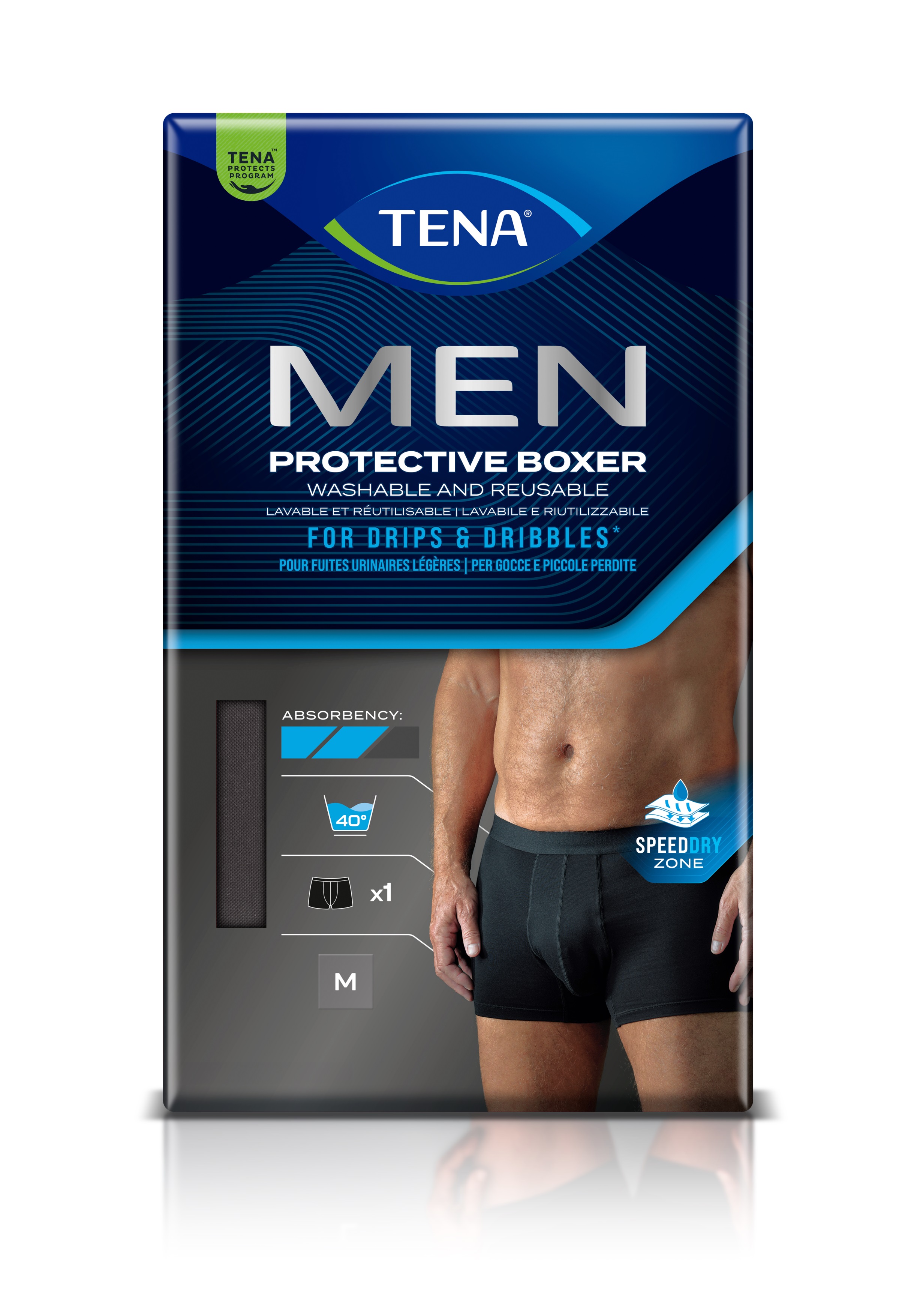 TENA men kaitsvad bokserid meestele tilkade ja kergete uriinilekete puhuks. Orgaanilisest puuvillast bokserid sarnanevad tavalisele aluspesule, kuid neil on sisseehitatud kaitse mis imab kiirelt lekke ja hoiab nahapinna ning bokserite välispinna kuivana. Imavad kuni ühe espressotassitäie vedelikku. Üleni musta värvi. Pükste kaitsev toime säilib hooldusjuhiseid järgides kuni 100 pesukorda. M suurus vööümbermõõdule 81-86cm L suurus vööümbermõõdule 91-97cm Kasutamisjuhised ...