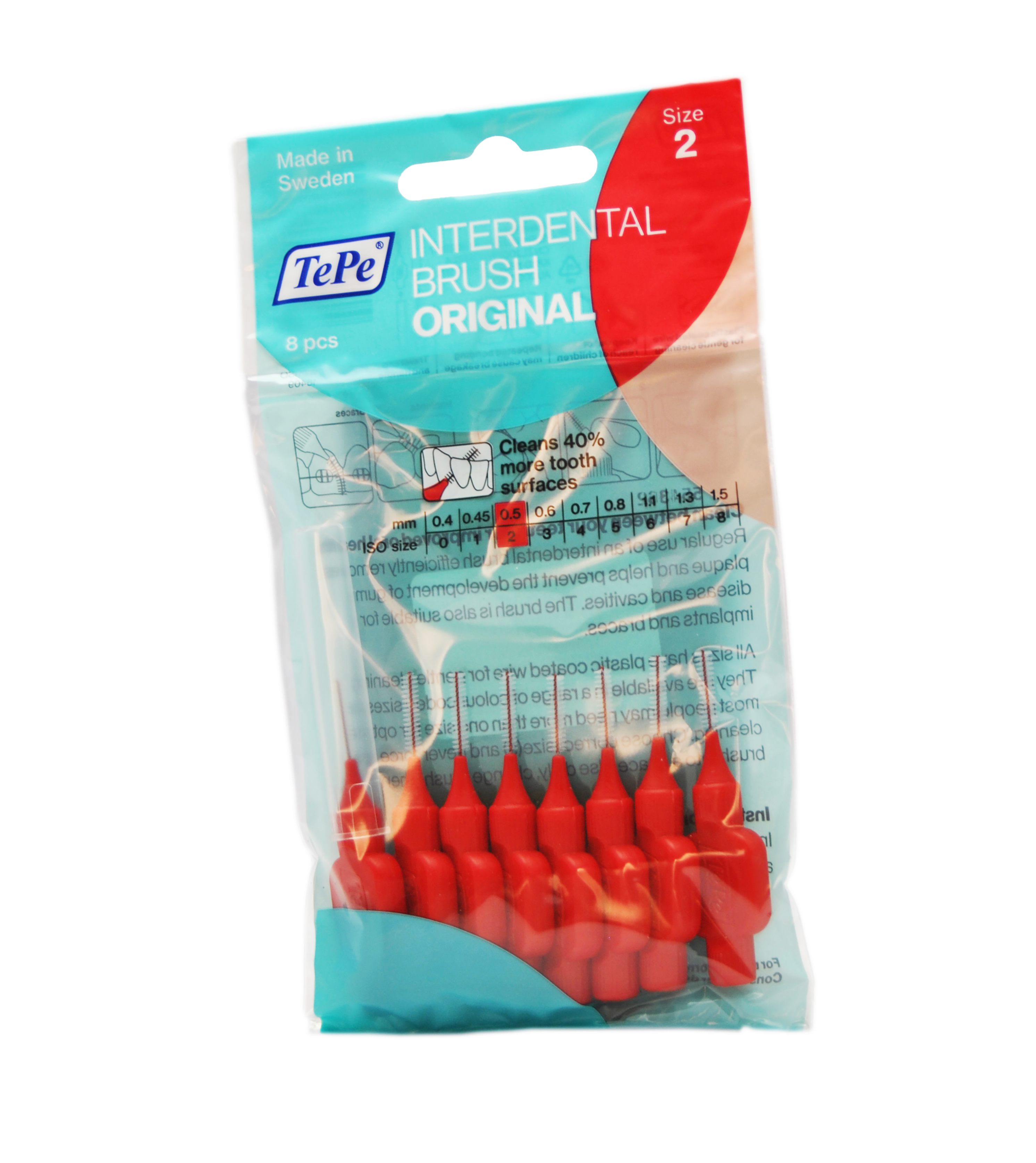 TePe interdentaalharjad. 2. suurus, 0,5mm Hambavahede puhastamiseks. Pakendis on 8tk. + otsik, mis tagab mugava kaasaskandmise. Otsik on ühtlasi ka harjale käepidemeks. Kasutamisjuhised Hambavahede puhastamine on samavõrd oluline kui hambaharja kasutamine. Kasuta igapäevaselt hambavaheharju, soovitavalt õhtuti peale hambapesu. Lükka hari hammaste vahele igemepiiril ja keeruta kergelt vindiga. See hõlbustab juurdepääsu ja pikendab harja kasutusiga. Liiguta harja sujuvalt ...