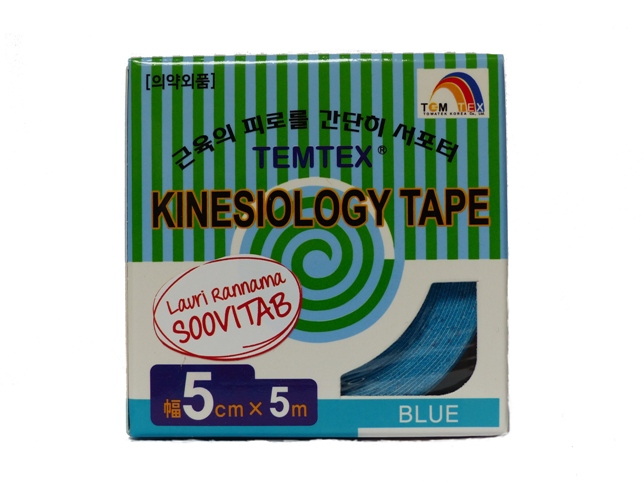 Kinesioteip on kangast ja akrüülliimist veniv teip, mida kasutatakse taastusravis ja spordimeditsiinis. Kinesioteip on väga paljude kasutusvõimalustega: fikseerib ja stabiliseerib, kiirendab keha verevoolutuse, lümfi ja ainevahetuse protsesse, säilitab paigaldamisel keha normaalse dünaamilise liikuvuse. Kasutamine: Mitte hoida nahal üle 5 päeva. Teip tuleb nahalt eemaldada ettevaatlikult. Mõõdud: 5m x 5cm. Värv: sinine. Päritoluriik: Korea. Maaletooja: OÜ Borealis Holdin...