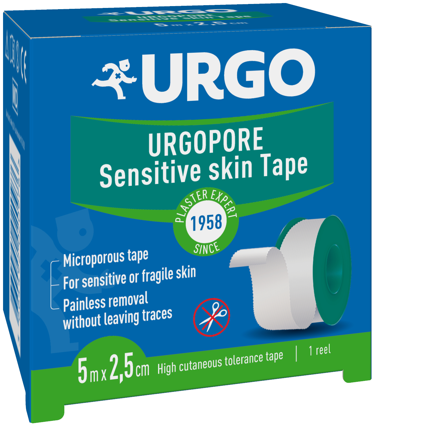 Nahavärvi tekstiilplaaster. Rebitav. Kasutatakse kinnitusteibina. Kasutamisjuhised Asetada puhtale, kuivale ning vigastamata nahale. Rasvaste toodete (kehavõided, kreemid) kasutamine võib vähendada kleepuvust. Hoiatused ja ettevaatusabinõud Vastunäidustatud niiskete materjalide ja sondide kinnitamiseks. Seadme ja pakendi sisu 2,5 cm x 5 m. Tootja või tootja volitatud esindaja Tootja: Laboratoires URGO HEALTHCARE, 42 rue de Longvic, 21300 Chenove, Prantsusmaa. Levitaja: M...