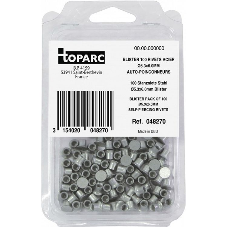 100 Self Piercing Steel Rivets Steel 5.3X5.0Mm - Blister Pack Gys Tootekood: GYS048263 GTIN: 3154020048263 Muu keevitaja varustus | 29,29 € | Poodi | ||