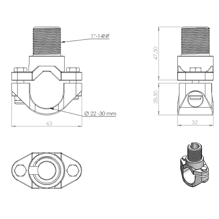 10000-123 RAIL MOUNT STAINLESS STEEL Poleeritud roostevabast terasest klamber 1"-14NF Tootekood: 10000-123 | 60,95 € | Poodi | ||