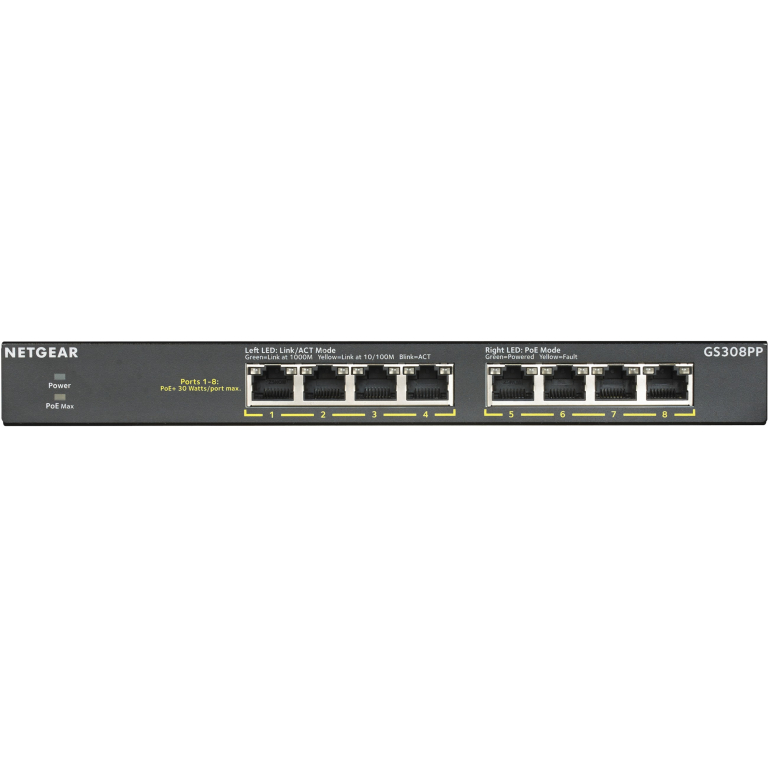 8P Netgear GS308PP RM PoE+ Tootekood: GS308PP-100EUS Network switches | 141,00 € | Poodi | ||