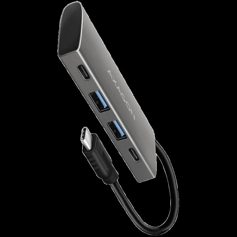 AXAGON HMC-5H60 USB-C 3.2 Gen 1 / 5in1 hub, 2x USB-A, 1x USB-C, 4K 60Hz HDMI, PD 100W, 15cm USB-C cable Tootekood: HMC-5H60 Laptop docking stations <p>The multi-port USB-C 5Gbps <strong>AXAGON HMC-5H60 5in1 hub </strong>expands your laptop, computer or phone <strong>with five ports</strong>. Via the double-sided USB-C connector, you can quickly and easily connect <strong>a monitor</strong> and <strong>three USB devices </strong>to the computer at the same time. You also get the possibility to supply laptop using <strong>Power Delivery</strong> technology at the same time. The port replicator will thus provide you with a simple and compact <strong>5in1 docking station</strong> for modern laptops.</p> <p>The USB hub offers <strong>three USB 5Gbps outputs</strong>, two with standard<strong> USB-A</strong> and a third with<strong> USB-C</strong> data connector. Transfer rate up to 5Gb/s thanks to the fast USB 3.2 Gen 1 interface. The hub can permanently connect several external drives simultaneously and also allows <strong>charging of phones and tablets with up to 1.5A/5V current.</strong> From the hub, you can easily charge e.g. Android smartphone, Apple iPhone, Apple iPad etc.</p> <p>Another USB-C (PD) connector is reserved only for charging phones or laptops using <strong>Power Delivery 3.0 technology</strong> <strong>with up to 100W of power</strong>. Connect a suitable USB-C Power Delivery charger into the hub and connect the hub to a laptop that supports Power Delivery. This saves one USB-C port.</p> <p><strong>HDMI output</strong> provides high quality image up to <strong>4K/60Hz Ultra HD</strong> resolution and supports multi-channel audio transmission. High frequencies at popular gaming resolutions of <strong>2K/120Hz or FullHD/240Hz</strong> are also supported. Thanks to <strong>HDR (high dynamic range) support</strong>, you can enjoy a significantly expanded range of colours and contrasts. For video outputs to work properly, the laptop must have a USB-C port with DisplayPort Alternate Mode (DP Alt Mode) support or a Thunderbolt 3, 4 port and above.</p> <p><strong>The compact and slim aluminium body</strong> not only looks great, but also provides mechanical durability and <strong>passive cooling</strong>. You will also be pleased with the finely textured surface, which does not leave fingerprints.</p> <p>USB-C hub is an ideal accessory<strong> for laptops without USB-A connectors and video output</strong>. You can use your current USB peripherals without having to purchase new ones. Thanks to the <strong>Plug and Play </strong>and <strong>Hot Plug </strong>functions, connecting the hub itself is very simple without complicated installation, and peripherals can also be easily connected and disconnected while the computer is running. The hub does not afraid of <strong>connection to phones</strong> with a USB-C connector. For example, you can connect a flash drive, keyboard, mouse, display, TV or projector to the phone.</p> <p><strong>Input (connection to laptop):</strong><br /> USB 5Gbps (USB 3.2 Gen 1 / USB 3.0), USB-C male connector.<br /> Compatible with USB 3.2 Gen 2, USB4 and Thunderbolt 3/4.</p> <p><strong>Input (power supply):</strong><br /> USB Power Delivery 3.0 - 100W port, USB-C female connector.<br /> Charging of the notebook from the power adapter via USB-C hub.<br /> PD power must be supported by both the laptop (phone) and the wall charger.</p> <p><strong>USB outputs:</strong><br /> 2x USB 5Gbps port, USB-A female connector.<br /> 1x USB 5Gbps port, USB-C female connector.<br /> USB-C hub can handle the connection of several external drives at the same time.<br /> Charging of mobile devices (including iPad) with a current of up to 1.5A/5V from the hub's USB-A and USB-C ports.</p> <p><strong>Video output:</strong><br /> 1x HDMI A port, HDMI A female connector.<br /> 4K resolution 4096 x 2160 at up to 60Hz. <br /> 2K / WQHD resolution 2560 x 1440 at up to 120Hz. <br /> FHD resolution 1920 x 1080 at up to 240Hz.<br /> Support for the above max. supported resolutions and frequencies requires connection to a computer with DisplayPort version 1.4.<br /> For the video output function, the hub must be connected to a USB-C port supporting DisplayPort Alternate Mode (DP Alt Mode) or to a USB-C port supporting Thunderbolt 3/4. A suitable OS is also required. The video output function will not be available without these requirements.<br /> HDR support (High dynamic range, 10-bit support) - realistic reproduction of light and dark details.<br /> HPD (Hot-Plug-Detect) support.<br /> TMDS (Transition Minimized Differential Signalling) support.<br /> Full support for HDCP 1.4 and 2.2 (High-bandwidth Digital Content Protection).<br /> Support for up to 2-channel LPCM audio.<br /> Support for 2-channel audio sampling rate up to 192 kHz and up to 24-bit audio - depends on source and end device, i.e. laptop/phone and TV/monitor/AV receiver.</p> <p><strong>Other features:</strong><br /> Possibility to connect your device while running thanks to the Hot Plug support.<br /> Full Plug and Play support.<br /> Sleep mode support. <br /> Power via USB bus - USB bus power or from PD wall charger.<br /> Heavy-duty aluminium body for better hub cooling.<br /> The LED indicates with constant light the hub connection to the computer.<br /> The high quality shielded cable ensures high communication speed and minimal undesirable interference.<br /> Dimensions 110 x 32 x 11 mm.<br /> Weight 52 g (incl. cable). <br /> USB cable length 15 cm.</p> <p><strong>Supported operating systems:</strong><br /> Microsoft Windows 10 / 11, macOS, iPadOS, iOS, Linux, Chrome OS and Android. <br /> Compatibility depends on the operating system and device manufacturer support.<br /> DisplayPort Alternate Mode (DP Alt Mode) is only supported in updated OS and also depends on support from device (notebook, phone) manufacturer.<br /> Graphics card drivers may also affect the correct operation of the product. We recommend do
