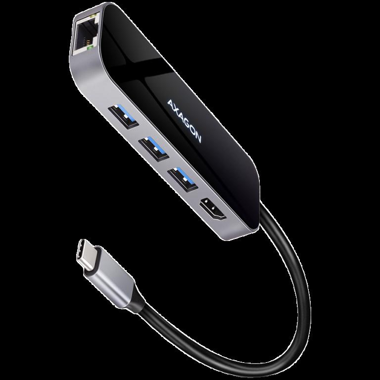 AXAGON multi-port dock HMC-5HL - 2xUSB-A 4K HDMI GLAN PD100W USB-C 15cm Tootekood: HMC-5HL Laptop docking stations <p>The multi-port USB-C 5Gbps hub AXAGON HMC-5HL expands your laptop with five ports. You can easily and quickly connect a monitor, two USB devices and a Gigabit Ethernet network to the computer at the same time via the double-sided USB-C connector. You also get the possibility to supply laptop using Power Delivery technology. The USB-C hub will provide you with a universal and powerful 5in1 docking station for modern laptops.</p> <p>The USB hub offers two USB outputs with standard USB-A connectors. The hub can also handle permanent connection of several external drives simultaneously. Transfer rate up to 5Gb/s thanks to the fast USB 3.2 Gen 1 interface. The hub will also enable charging of phones and tablets with a current of up to 1.5A/5V, so you can easily charge e.g. Android smartphone, Apple iPhone, Apple iPad etc. </p> <p>The USB-C connector is reserved only for powering and simultaneous charging of laptops using Power Delivery 3.0 technology with a power of up to 100W. Connect the USB-C Power Delivery charger to the hub and connect the hub to the laptop. This saves one USB-C port. The condition is a laptop with Power Delivery charging support from the USB-C port and a suitable PD charger.</p> <p>HDMI video output provides high-quality images up to 4K/60Hz Ultra HD resolution. High frequencies at popular gaming resolutions of 2K/144Hz or FullHD/240Hz are also supported. Thanks to HDR (high dynamic range) support, you can enjoy a significantly expanded range of colors and contrasts without restrictions. DisplayPort Alternate Mode (DP Alt Mode) enabled USB-C port or Thunderbolt 3/4 port is necessary for the proper function of video output.</p> <p>Gigabit network card extends your computer by a fast and stable network connection, adds the missing RJ-45 network connector or another network card. </p> <p>The aluminum cover ensures mechanical durability and cooling of the USB hub. Thanks to the Plug and Play and Hot Plug functions, connecting the hub itself is very simple without complicated installation, and peripherals can also be easily connected and disconnected while the computer is running. </p> <p><strong>Input:</strong><br /> USB 5Gbps (USB 3.2 Gen 1 / USB 3.0).<br /> Compatible with Thunderbolt 3/4.<br /> Connection via reversible USB type C female connector.</p> <p><strong>USB outputs:</strong><br /> 2x USB 5Gbps port, USB-A female connector. <br /> 1x Power Delivery port (power only), USB-C female connector. <br /> USB-C hub can handle the connection up to two external drives simultaneously. <br /> Charging of mobile devices (including iPad) with a current of up to 1.5A from the hub's USB-A ports.</p> <p><strong>Video output:</strong><br /> 1x HDMI A port, HDMI A female connector. <br /> 4K resolution 4096 x 2160 at up to 60Hz. <br /> 2K / WQHD resolution 2560 x 1440 at up to 120Hz. <br /> FHD resolution 1920 x 1080 at up to 240Hz.<br /> Support for the above max. supported resolutions and frequencies requires connection to a computer with DisplayPort version 1.4. <br /> For the video output function, the hub must be connected to a USB-C port supporting DisplayPort Alternate Mode (DP Alt Mode) or to a USB-C port supporting Thunderbolt 3/4. A suitable OS is also required. The video output function will not be available without these requirements.<br /> HDR support (High dynamic range, 10 bit support) - realistic reproduction of light and dark details.<br />HPD (Hot-Plug-Detect) support.<br /> TMDS (Transition Minimized Differential Signalling) support.<br /> HDCP 1.4 and 2.3 (High-bandwidth Digital Content Protection) full support.<br /> Support for 2-channel audio sampling rate up to 192 kHz and up to 24-bit audio - depends on source and end device, i.e. laptop/phone and TV/monitor/AV receiver.</p> <p><strong>RJ-45 output:</strong><br /> Gigabit Ethernet interface with RJ-45 connector for UTP or STP cable connection.<br /> Supported transmission rates for the Ethernet interface 10/100/1000 Mb/s.<br /> Supported IEEE 802.3 10Base-T, IEEE 802.3u 100Base-TX, IEEE 802.3ab 1000Base-T specifications.<br /> 10/100/1000 Mb/s auto-detection.<br /> Wake-on-LAN support.</p> <p><strong>Power Delivery:</strong><br /> Power Delivery 3.0 support device power supply from the wall charger via USB-C hub.<br /> Maximum power supply power via PD USB-C hub output 100W - 20V/5A.<br /> Required PD support from the device (laptop, phone) and a suitable PD wall charger.</p> <p><strong>Other features:</strong><br /> Possibility to connect your device while running thanks to the Hot Plug support. <br /> Full Plug and Play support.<br /> Standby mode support. <br /> Power via USB bus - USB bus power or from PD wall charger.<br /> Heavy-duty aluminium body for better hub cooling. Higher surface hub temperature is not a problem - the heat generated by the hub operation is better dissipated and transferred to the surroundings.<br /> The blue LED indicates with constant light the hub connection to the computer.<br /> High quality shielded cable ensures fast communication speed and minimal unwanted interference. <br /> Dimensions 65 x 77 x 15 mm.<br /> Weight 61 g.<br /> USB-C male cable length 19 cm</p> <p><strong>Supported operating systems: </strong><br /> Windows 10 / 11 and later macOS, Linux, Android a Chrome OS. <br /> Compatibility depends on the operating system and device manufacturer support.<br /> DisplayPort Alternate Mode (DP Alt Mode) is only supported in updated OS and also depends on support from device (notebook, phone) manufacturer. <br /> Graphics card drivers may also affect the correct operation of the product. We recommend downloading the latest version of drivers.</p> <p><strong>Package contains:</strong><br /> USB-C hub,<br /> multilingual manual CZ / DE / DK / ENG / ESP / FIN / FR / GR / HR / HU / IT / NL / PL / PT / RO / RU / SK / SWE / BG / CN / TR / ARA,<br /> packed 