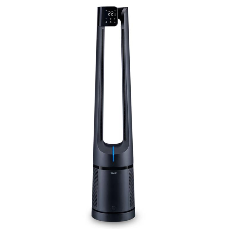 <p>Beureri nutikas õhupuhasti-ventilaator ühendab kaasaegse disaini ja mitmekülgsed funktsioonid, et luua mugav ja tervislik sisekliima aastaringselt. Nutikas automaatrežiim kohandab töövõimsust vastavalt ruumi õhukvaliteedile, pakkudes optimaalset tulemust ilma käsitsi seadistamiseta. Värviline indikaator annab kohese ülevaate õhu seisukorrast ning vaikne töö ja taimer muudavad seadme sobivaks ka magamistuppa.<br /><br />• Nutikas automaatrežiim: tuvastab 2,5 μm suurused osakesed ja kohandab puhastustulemust vastavalt ümbritsevale õhule<br />• Kolmekihiline puhastus: eelfilter, HEPA H13 ja aktiivsöefilter<br />• 5 töörežiimi, sh öörežiim<br />• 12 ventilaatori kiirust, 130° pöörlev ventilaator<br />• Labadeta disain – ohutu, vaikne ja lihtsalt puhastatav<br />• LED-indikaator õhukvaliteedi kuvamiseks<br />• Taimer (1–12 tundi) ja ekraani väljalülitusrežiim<br />• Näitab reaalajas ruumi temperatuuri<br />• Vahetatav filter koos vahetusmeeldetuletusega<br />• Kaugjuhtimine magnetkinnitusega puldiga</p>