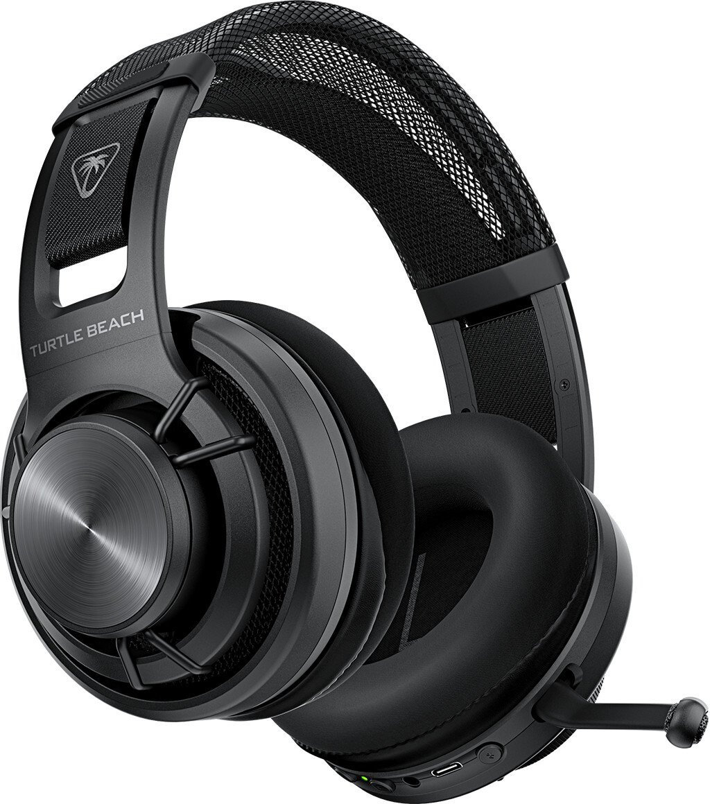 A new standard in PC gaming audio has been set with the Turtle Beach® Atlas™ Air – the first wireless open back gaming headset for PC. 40mm drivers with high-fidelity 24-bit audio mode and a removable, flip-to-mute high-bandwidth (16-bit/32kHz sampling rate) microphone are both fully adjustable in the Swarm™ II software for the ultimate PC gaming experience. The world’s first floating earcup plus a floating headband lends to its class-leading light weight of 301g and an ultra-comfortable fit. Atlas™ Air is equipped with low-latency 2.4GHz wireless + Bluetooth® for reliable wireless connection on Windows PCs, PS5™ & PS4™, Nintendo Switch™ and mobile devices. Open Back Design with World’s First Floating Earcup 40mm Drivers with High-Fidelity 24-bit Audio Quality Flip-to-Mute Mic with Noise Reduction & 32kHz High-Bandwidth Performance Lightweight Design at 301g with Glasses Friendly Memory Foam Cushions Low Latency Wireless + Bluetooth® or Wired Mode QuickSwitch Button for Seamless Wireless to Bluetooth® switching Up to 50 Hour Battery Life Plus Quick Charge Swarm™ II Desktop & Mobile App with Advanced 10-Band EQ Waves 3D Audio for PC + 10-Band EQ & Superhuman Hearing® Customizable Headband & Ear Cushion Mod Pack Sold Separately Open Back DesignExperience the most natural and realistic high-fidelity sound while staying in touch with your surroundings, the best in game immersion and directionality to spot the enemy first. The breathable open back design also keeps your ears cool and comfortable overlong gaming sessions.24-bit Resolution, High-Fidelity Wireless AudioAvailable exclusively in PC mode, enjoy 24-bit, 96kHz sampling rate that provides a more accurate reproduction of the original signal for optimal sound quality. Floating FitRevolutionizing comfort with the world’s first floating earcup paired with an adjustable floating headband the headset to instantly conforms to the contours of your head and forget it’s even there.High-Precision DriversDesigned specifically to maximize audio performance with its open back design, the 40mm drivers produce phenomenal, high-fidelity audio quality with an extensive 20Hz – 40kHz frequency range.Exceptional Broadcast Quality MicrophoneThe removable, flip-to-mute microphone with high-bandwidth 16-bit, 32kHz sampling rate allows for broadcast chat clarity, unprecedented in a wireless headset. The uni-directional design and an included windscreen ensures minimal background noise and distortion for the clearest comms possible. Further refine your microphone settings with the Swarm™ II software.Lightweight ComfortWeighing in at just 301g with the microphone installed, the Atlas™ Air is the lightest headset in its class. Plus, an innovative floating design and memory foam ear cushions with ProSpecs™ glasses relief technology allows every gamer to enjoy the same great comfort.Low Latency Wireless + Bluetooth®Experience low-latency PC & console freedom with 2.4GHz wireless and Bluetooth® 5.2 on PC, PlayStation®, Nintendo Switch™, and mobile devices. For use in streaming setups, or as a passive wired headset, the Atlas™ Air has a built-in 3.5mm audio port plus an included cable.QuickSwitch TechnologyEasily switch between 2.4GHz wireless & Bluetooth® modes with the built-in QuickSwitch button. A simple press of the button switches your audio & chat source between wireless & Bluetooth® devices, enabling you to effortlessly transition between connections.Advanced Superhuman Hearing® Enjoy the same great battlefield advantage of Superhuman Hearing®, but now toggle between three different preset levels and adjust the intensity for a wide range of games.