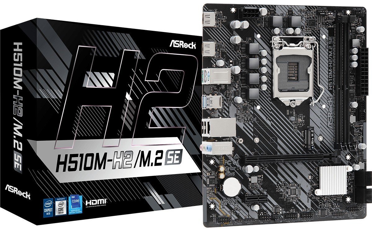 Discover the ASRock H510M-H2/M.2 SE motherboard, a cornerstone for your PC build that combines performance, connectivity, and audio quality into one compact package. Designed to support 10th and 11th Generation Intel Core processors, this micro ATX motherboard is optimized for both gaming and professional workloads. With dual-channel DDR4 SDRAM support and speeds up to 3200 MHz, it ensures smooth and efficient operation of your applications.The motherboard features a high-definition audio output with an 8-channel audio system and Realtek ALC897 codec, providing an immersive sound experience. Its versatile connectivity options include HDMI, USB 2.0, and USB 3.2 Gen 1 ports, catering to a wide range of peripherals and devices. Expansion capabilities are robust, with PCIe 4.0 x16, PCIe 3.0 x1, and M.2 socket slots available for graphics, storage, and other hardware upgrades.Equipped with advanced features such as Intel Turbo Boost Technology and a 4 Phase Power Design, the ASRock H510M-H2/M.2 SE motherboard ensures stability and reliability for your system. Whether you're building a new PC or upgrading an existing one, this motherboard offers a solid foundation with its blend of performance, expansion, and audio quality.