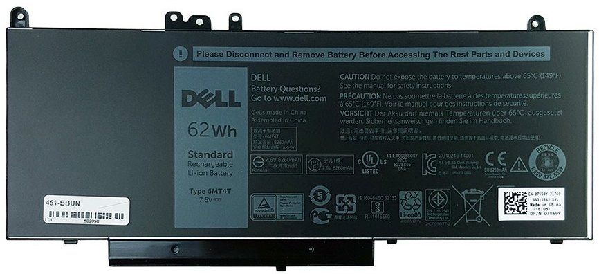 Dell 6MT4T aku Latitude E5470 E5570  Tootekood: 6MT4T  Notebook batteries  Originaal Dell 6MT4T sülearvuti aku 4-cell 62Wh Tootekirjeldus Dell 6MT4T on usaldusväärne originaalakuga varuosa, mis sobib ideaalselt äriklassi sülearvutitele Latitude E5470, E5570, E5270 ja Precision 3510. Tegu on 4-cell 62Wh liitium-ioon akuga, mis pakub suurepärast jõudlust ja pikaajalist tööaega. Tehnilised andmed ???? Tüüp: Liitium-ioon (Li-ion) ⚡ Mahutavus: 62Wh ???? Pinge: 7.6V ???? Elemendid: 4 ????️ Originaaltoode: Dell OEM ????️ Kaitsefunktsioonid: Ülekuumenemise, ülelaadimise ja lühise kaitse Sobivusmudelid Dell Latitude: E5470 E5570 E5270 Dell Precision: 3510 Asenduskoodid / Part Number (P/N): 6MT4T, 06MT4T, 7V69Y, TXF9M, HK6DV, K3JK9, CHWGG, 79VRK Müügipunktid ja eelised ✔ Originaaltoode – maksimaalne sobivus ja töökindlus ✔ Suure mahutavusega 62Wh aku – sobilik ka pikemaks tööpäevaks ✔ Sertifitseeritud kvaliteet ja turvalisus ✔ Lihtne paigaldada – ei vaja lisaseadistusi ✔ Optimaalne valik ärikasutajale ja mobiilsele töötajale Dell 6MT4T – vastupidavus, millele saad loota   |  87,90 €   |  Poodi | ||
