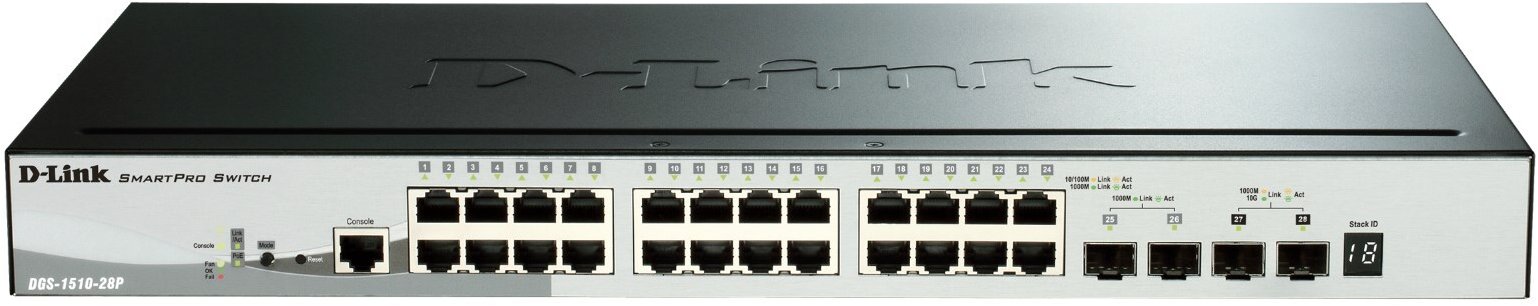 D-Link Switch DGS-1510-28P 24GE PoE 4SFP  Tootekood: DGS-1510-28P/E GTIN: 790069467936 Switches  DGS-1510 Series Gigabit Stackable Managed Smart Switches L2 management and security with L3 features CLI command line, console port and Web GUI 10G SFP+ physical stackable Static and MSTP routes PoE (Power over Ethernet) option Lifetime-Limited warranty upon registration CLI command line Supports a standard and commonly used command line interface for system management. Physical racking Physical stacking of up to 6 units in a stack with a total of 288 ports. 10G uplink ports With SFP+ ports, you can connect to other areas of the network with 10G throughput. Static routing Segregation of L3 traffic between switches, regardless of VLAN segemntation. Multiple images and confusion files Firmware updates and configuration testing without any risk of losing settings. Limited Lifetime Warranty Register your product to benefit from the Lifetime Limited Warranty. A large PoE power budget and extensive Layer 2 features make the DGS-1510 family switches a flexible and cost-effective solution for expanding any corporate network. The DGS1510 series is the latest generation of managed Smart switches with 10G SFP+ fibre ports for physical stacking or uplinks. The combination of high throughput, industry-standard CLI console compliance and the ability to use PoE makes the DGS1510 switch series an ideal solution for SMBs as well as enterprise environments. Full feature set with L3 traffic management The DGS1510 switch series features advanced network management tools via an industry-standard CLI console, console serial port and the GUI browser-based user interface. This provides your business with VLAN, multiple spanning tree protocol (MSTP), link aggregation (LACP), static routes, multiple firmware images and multiple configuration files. With powerful security features in the form of IGMP snooping, access control lists, port security tools and the D-Link Safeguard Engine, which protects the network from malicious denial-of-service attacks from broadcast, multicast and unicast flooding, the DGS-1510 switch family is a versatile tool for networked enterprise environments. Fibre optic Uplink ports Network expansion to suit the needs of any business is possible with fibre uplink ports with advanced management and security features. D-View 7: free network design and management system D-Link's free Network Assistant (DNA) system provides information on all connected devices and speeds up initial configuration. The free D-View 7 network management system comes with a licence for 25 nodes and 2 probes and full access to management tools. An optional licence upgrade allows for expanded network and analysis capabilities. Energy saving D-Link's DGS-1510 family of switches with D-Link Green technology enables energy savings without affecting operational performance or functionality.   |  770,70 €   |  Poodi | ||