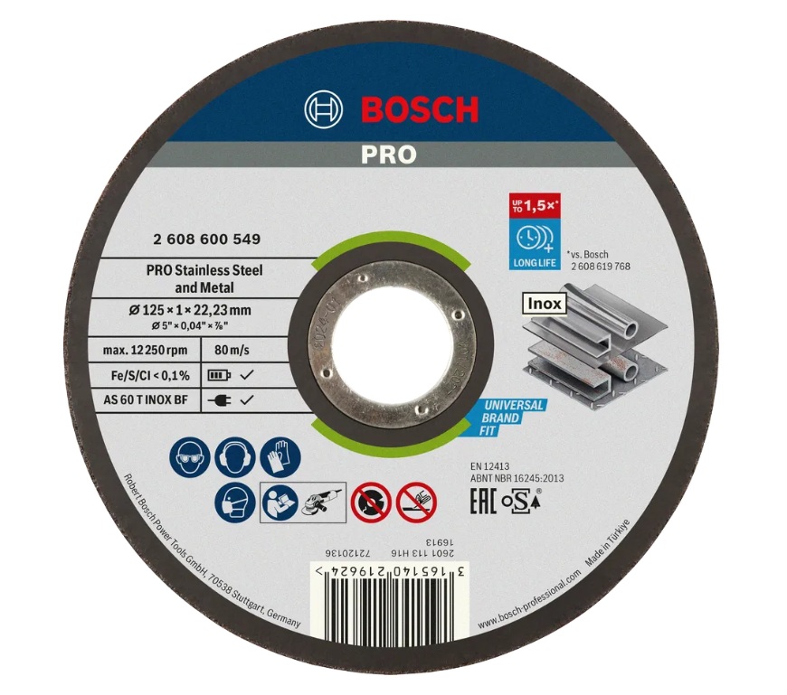 Abrasiiv lõikeketas Bosch 2608619256; 115x22,23 mm; X-Lock Tootekood: 2608619256 GTIN: 3165140947466 Lõikekettad, lihvimiskettad,Abrasiivsed lõikekettad | 1,45 € | Poodi | ||