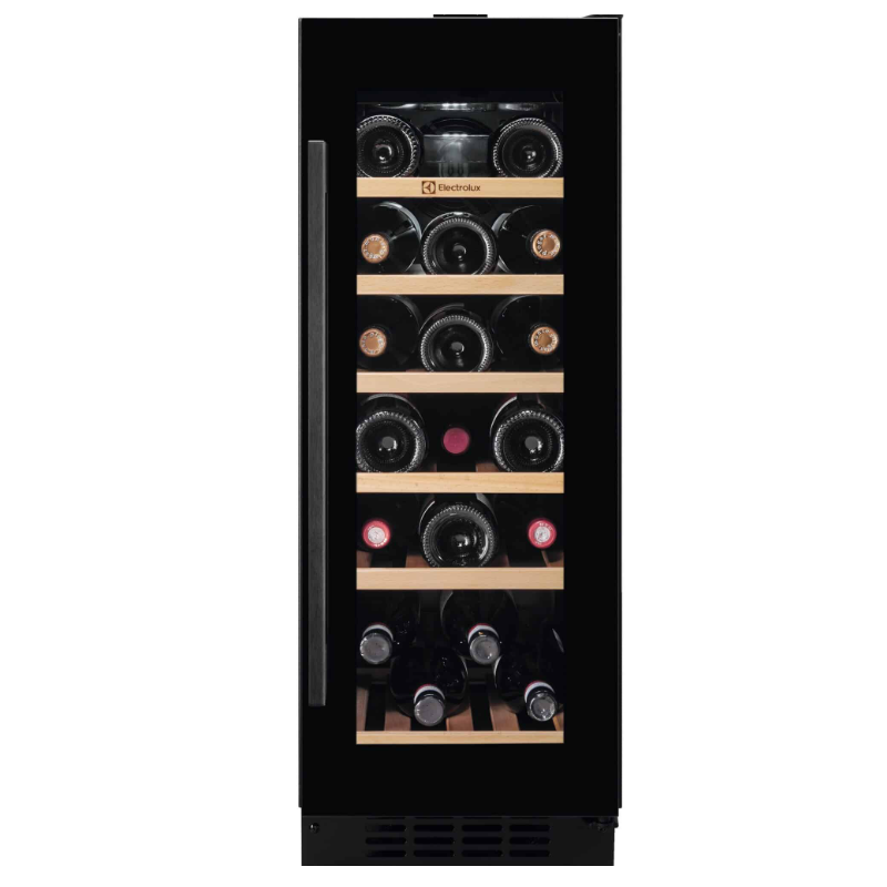 Electrolux EWS4020B5B veinikülmik – stiilne ja kompaktne lahendus veini ideaaltingimustel hoidmiseks Electrolux EWS4020B5B on 82 cm kõrgune töötasapinna alla integreeritav veinikülmik, mis ühendab elegantse disaini ja praktilised funktsioonid. Musta ja klaasi kombinatsioon loob modernse ilme, mis sobib suurepäraselt kaasaegsesse kööki. Üks temperatuuritsoon ning täpne puutetundlik juhtimine tagavad veini hoiustamiseks optimaalse keskkonna.Põhifunktsioonid ja eelised:1 temperatuuritsoon: võimaldab hoida veine +5 °C kuni +20 °C temperatuuril.LCD-ekraan ja puutejuhtimine: lihtne ja täpne seadistamine.Dünaamiline LED-sisevalgustus: tagab hea nähtavuse ning esitleb pudeleid kaunilt.6 puitriiulit: naturaalne ja vibratsiooni vähendav lahendus veini õrnaks hoiustamiseks.Vahetatav ukse käelisus: sobitub erinevat tüüpi köögilahendustega.Kompaktne mahutavus: ruumikas disain kuni 20 veinipudelile.Madala vibratsiooniga jahutusventilaator: tagab stabiilse keskkonna veinidele.Tehnilised andmed:Paigaldusviis: töötasapinna alla integreeritavVärvus: must + klaas