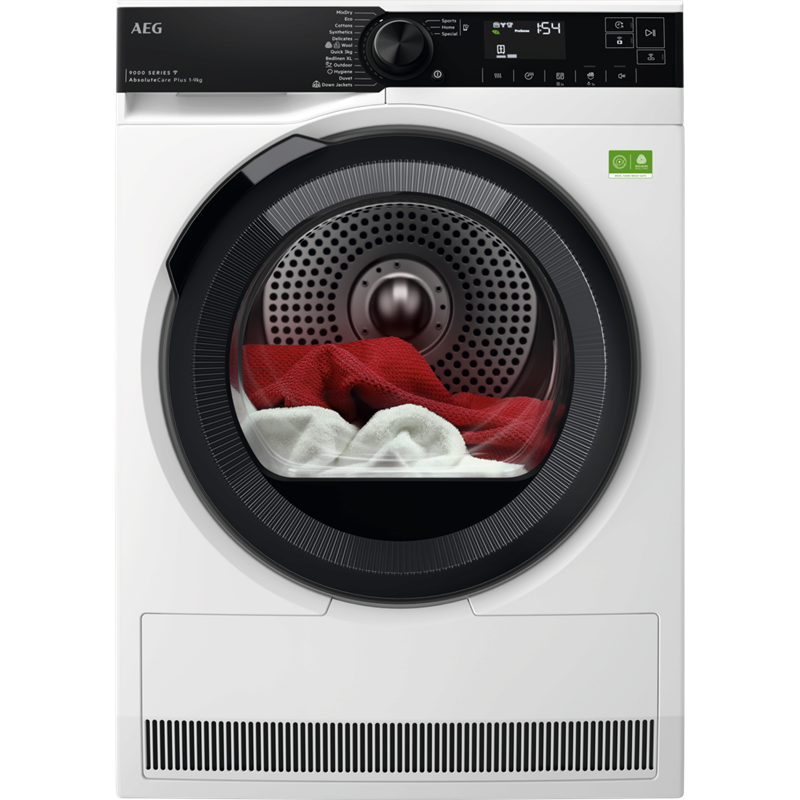 AEG TR9396CE Trummelkuivati soojuspumbaga 9000-seeria AbsoluteCare® Plus 9 kg• Ingliskeelne, Sümbolitega paneel• Jalad: 4 reguleeritavat jalga• Kuivusastme näit: kortsuvaba/lõpp, jahutus, kapikuiv, kuivatamine, ekstrakuiv, triikimiskuiv• Sisevalgustus• Invertermootori tehnoloogia• Kondensvee paagi asetus ja maht: paneeli vasakul küljel, 5.56 l KOHANDATAV KUIVATUS – ISEGI VILLA-, SIIDI- JA ÕUERIIETELEAbsoluteCare® trummelkuivati kasutab soojuspumba tehnoloogiat. Selle kuivatustrumli liikumist ja temperatuuri juhitakse ülima täpsusega, et vill ei tõmbuks kokku ja siid ei kaotaks vormi. AbsoluteCare® taastab isegi õueriiete veekindluse. Kuivatile on antud Woolmark Blue sertifikaat. 3DScan Tehnoloogia. Tekid ja sulejoped hoitud nagu uued. Jõudlus 100% taastatud*3DScan tehnoloogia tagab suurima kuivatamise täpsuse ja hoolduse. See skännib sügavalt, et lugeda esemete sees olevat niiskustaset. Tundke end kindlalt teades, et kõik oma esemed, isegi sulejoped ja suletekid kuivavad ühtlaselt ning jäävad kohevaks.ABSOLUTECARE®. EI MINGIT KOKKUTÕMBUMIST* AbsoluteCare® kasutab soojuspumba tehnoloogiat koos täpse trumli liikumise ja temperatuuriga, et kuivatada riideid sh ka õrnu kangaid ohutult - vill ei tõmbu kokku ja siid ei kaota oma kuju. Woolmarki sertifikaadiga pesumasin taastab ka välirõivaste veekindluseSEADMETE KOOSTOIME JÄRGMINE TASE AEGCONNECTED FUNKTSIOONIGAKasutage rakendust My AEG Care, et isikupärastada seadeid ning saada nutikaid nõuandeid ja soovitusi. Kohandage pesutsükleid ja saatke seadmele juhiseid, et kohandada see teie vajadustele ja harjumustele. Nutikas ja lihtnehooldus nutitelefoni kaudu. MixDry. Ei mingit sorteerimist. Ei mingit pingutust. Kuivad puuvillased riided koos MixDry kuivatab vaevata ja põhjalikult nii sünteetilised kui ka puuvillased rõivad ühtlased ilma üle- või alakuivatamiseta. Sorteerimist pole vaja. Soojuspumba tehnoloogia tagab, et esemed saavad täpselt vajaliku soojushulga, hoides energiatarbimise madalal.Hügieenitsükkel eemaldab kuivatamise ajal enam kui 99.9% bakteritest ja viirustest Swissatesti sertifikaadiga hügieenitsükkel töötab üle 60°C, kuivatades ja samal ajal esemeid desinfitseerides, eemaldades 99,9% bakteritest ja viirustest*. Nüüd saate tekke, patju ja riideid julgelt kuivatada.