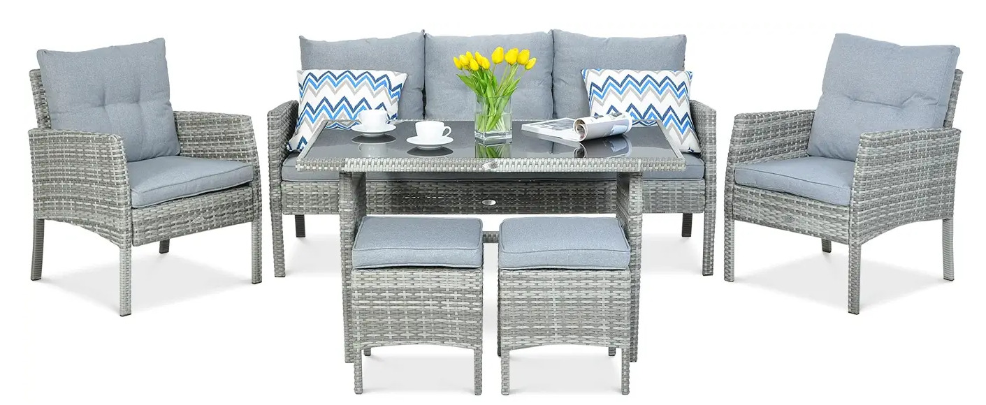 Aiamööbli komplekt Bologna, helehall v., 6 istekohta GTIN: 8479500000000 Mööblikomplektid | 335,12 € −9,45 € | Poodi | ||