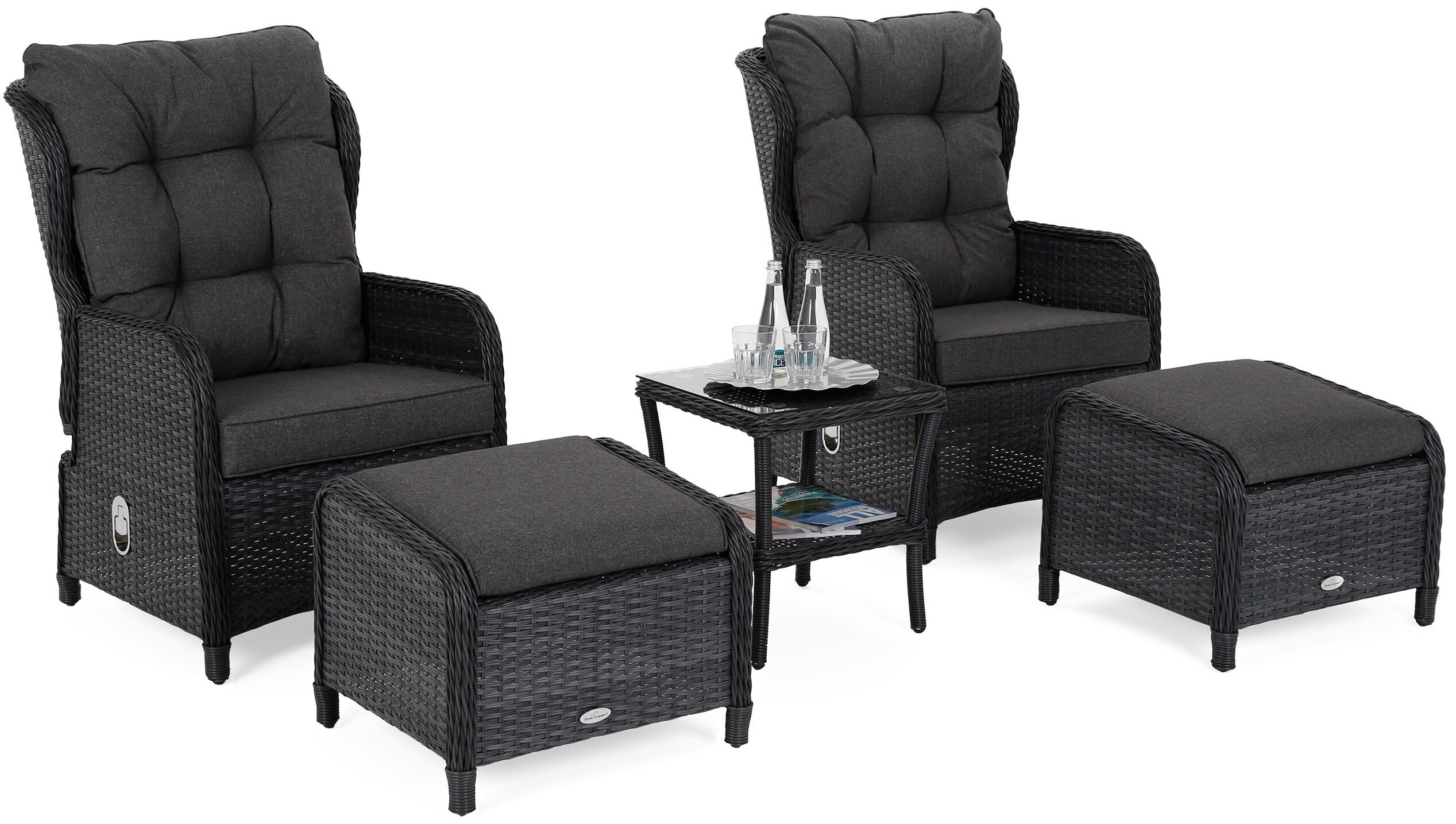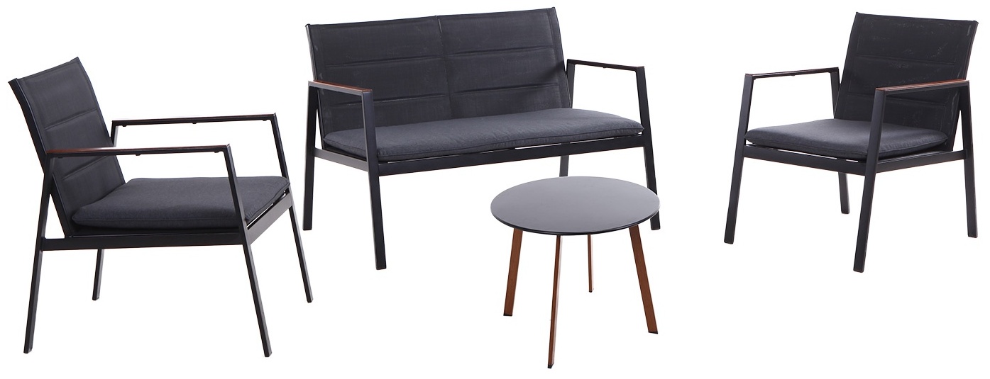 Aiamööbli komplekt Hatis „Gordo”, must v./tumehall v., 4 istekohta GTIN: 477850590102 Mööblikomplektid | 490,53 € | Poodi | ||
