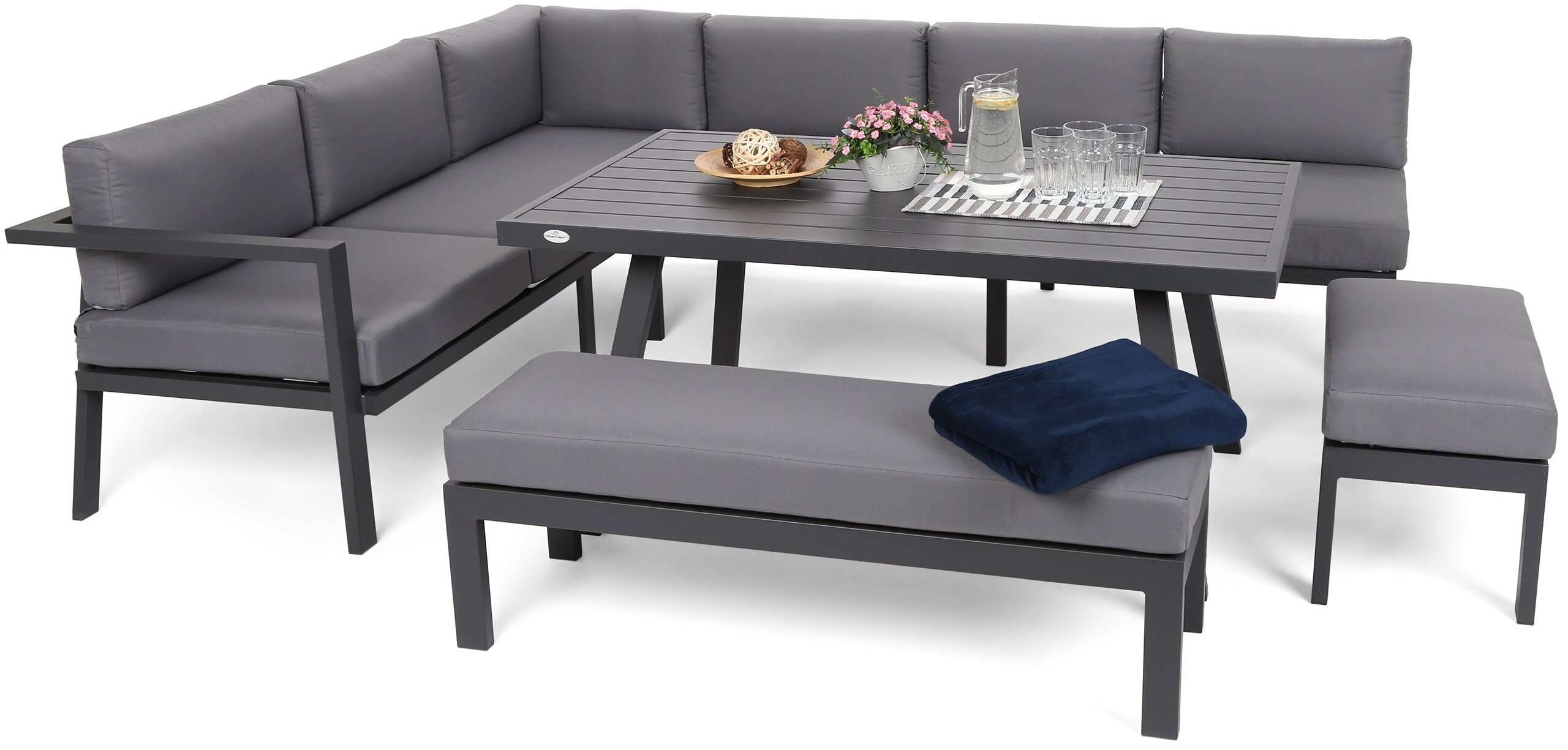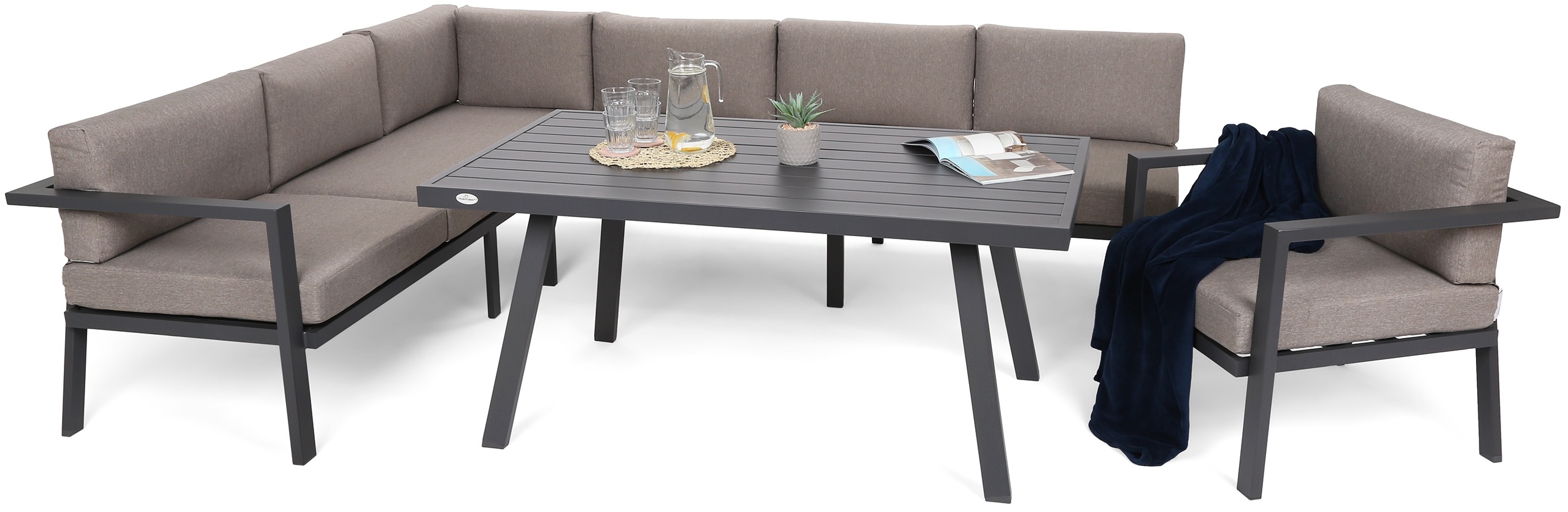 Aiamööbli komplekt Home & Garden Alicante Corner Left, hall v./tumehall v., 5-6 istekohta GTIN: 4906735730968 Mööblikomplektid | 2297,53 € | Poodi | ||