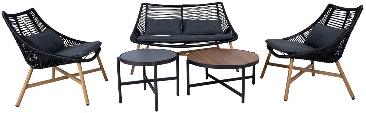 Aiamööbli komplekt Home4you Tampere, must v./puidu v./tumehall v., 4 istekohta GTIN: 4741617106872 Mööblikomplektid | 860,13 € | Poodi | ||