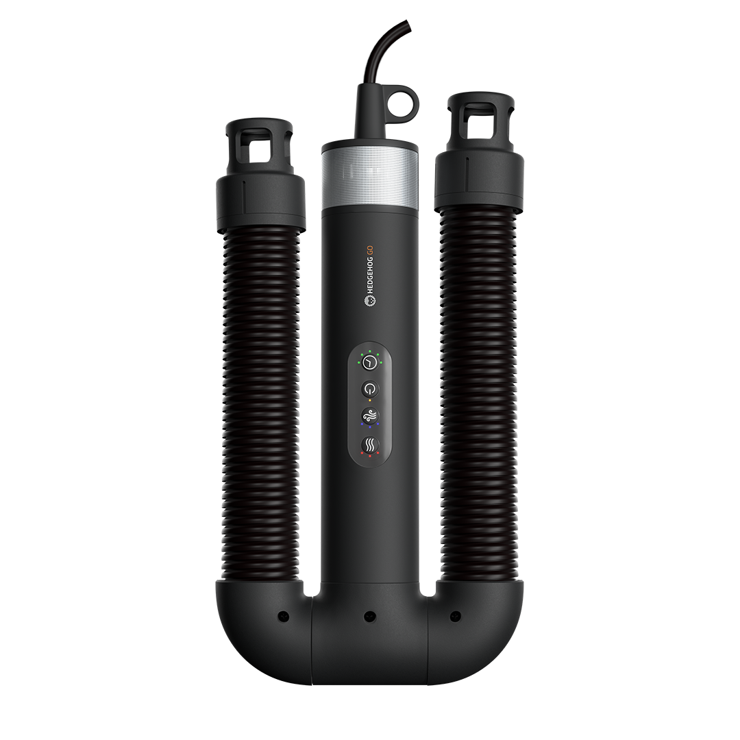 Hedgehog GO – TIME 2025. aasta parimate leiutiste võitja. Kaheotstarbeline disain: loodud aktiivsetele inimestele. Kompaktne, kerge ja uskumatult võimas – see kuivatab Sinu varustuse ja juuksed rekordajaga – olenemata sellest, kuhu Sinu seiklused Sind viivad! • Kuivatab saapaid, jalanõusid, kindaid ja isegi juukseid võimsa õhuvooluga – üks seade kõigi Sinu vajaduste jaoks • Suure jõudlusega mootor: 105 000 p/min ja õhukiirus üle 96 km/h, kuivatab iga kord kiiresti ja tõhusalt • Elegantne ja reisisõbralik: Mahub vaevata seljakotti, kohvrisse või käsipagasisse, võtmata väärtuslikku ruumi • Ülikerge konstruktsioon: Kaalub vaid 350 grammi – lihtne kaasas kanda, nii et Sa ei tunne seda kotis peaaegu üldse