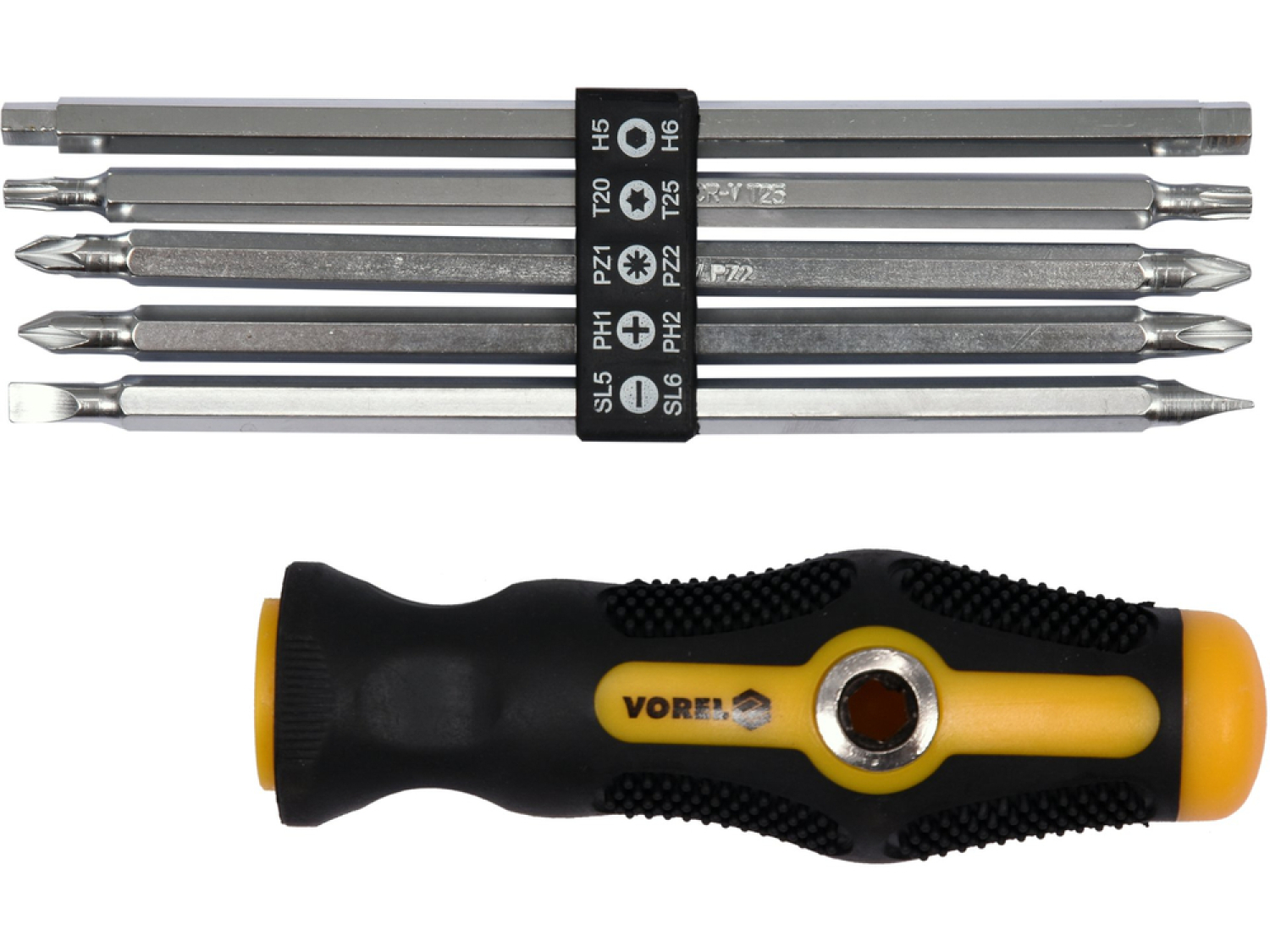 10 IN 1 Skrūvgriežu komplekts, VOREL, 64960, 6 daļas, divpusēji uzgaļi, CrV tērauds, ergonomisks rokturis Tootekood: 64960 GTIN: 5906083054914 Käsitööriistad | 4,90 € | Poodi | ||