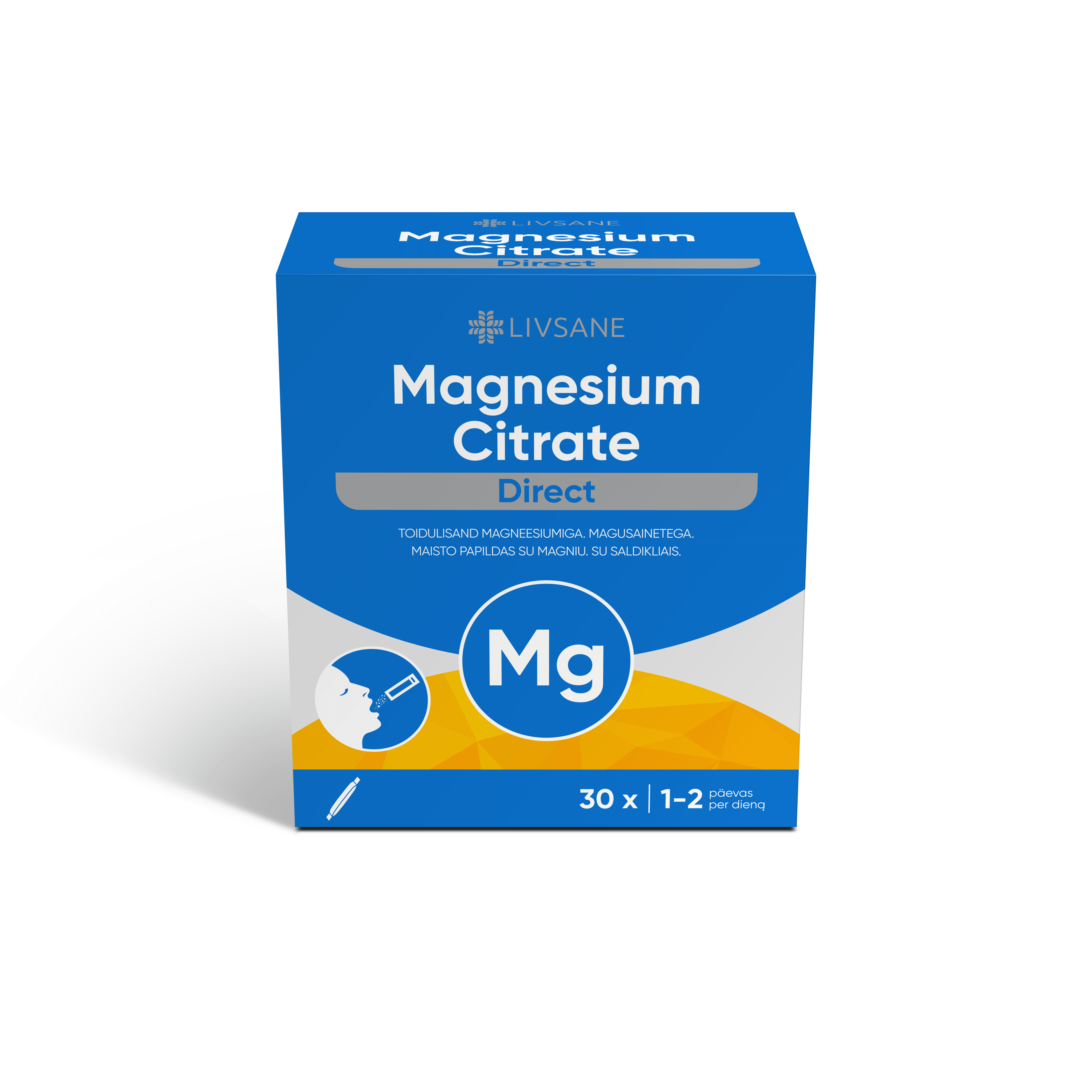 LIVSANE magneesiumtsitraat direkt sisaldab suhkruvabu graanuleid, mis on mõeldud magneesiumi kiireks tarbimiseks ilma vedelikuta. Orgaanilisel magneesiumtsitraadil on organismis parem biosaadavus. Füüsiline pingutus, sport ja stressirohked olukorrad suurendada organismi magneesiumivajadust. Seetõttu on oluline varustada organismi piisavas koguses magneesiumiga. Magneesium on organismis seotud mitme erineva protsessiga. Magneesium toetab lihaste normaalset tööd ja energiavahetust ning aitab vähendada väsimust. Lisaks aitab magneesium kaasa närvisüsteemi normaalsele talitlusele, hoiab hammaste ja luude tervist. Hoiatused: Suures koguses toidulisandi tarbimine võib tekitada kõhulahtisust!Oluline on toituda mitmekülgselt ja tasakaalustatult ning harrastada tervislikku elustiili! Mitte ületada päevaseks tarbimiseks soovitatavat kogust! Toidulisandit mitte kasutada mitmekesise toitumise asendajana! Hoida toodet lastele kättesaamatus kohas!