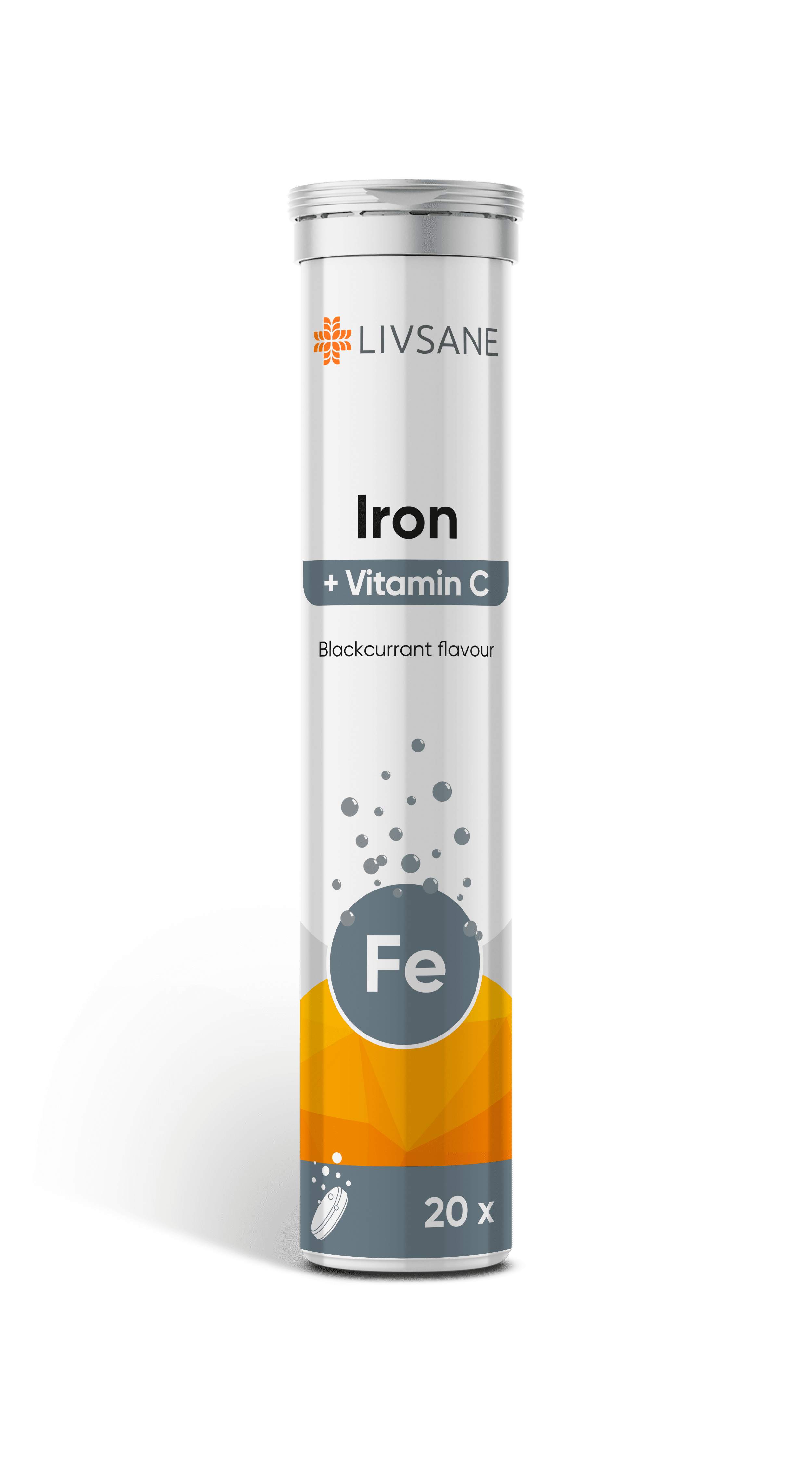 LIVSANE lahustuvad tabletid sisaldavad rauda ja C-vitamiini. Inimkeha efektiivseks tööks on vaja organismi pidevalt varustada rauaga. Raua ebapiisav tarbimine võib väljenduda mitmel erineval moel, näiteks kontsentratsioonivõime ajutises langemises või väsimuses. Raud on eriti oluline rasedatele ja rinnaga toitvatele naistele, naistele menstruatsiooni ajal, dieeti pidavatele inimestele ja sportlastele. Raud aitab kaasa normaalsele energiavahetusele, hapniku transpordile kehas ja toetab vere punaliblede moodustumist. Vitamiin C suurendab raua imendumist ja aitab vähendada väsimust ja kurnatust. Lahustuvad tabletid on meeldiva mustsõstra maitsega. Hoiatused: Oluline on toituda mitmekülgselt ja tasakaalustatult ning harrastada tervislikku elustiili! Mitte ületada päevaseks tarbimiseks soovitatavat kogust! Toidulisandit mitte kasutada mitmekesise toitumise asendajana! Hoida toodet lastele kättesaamatus kohas!