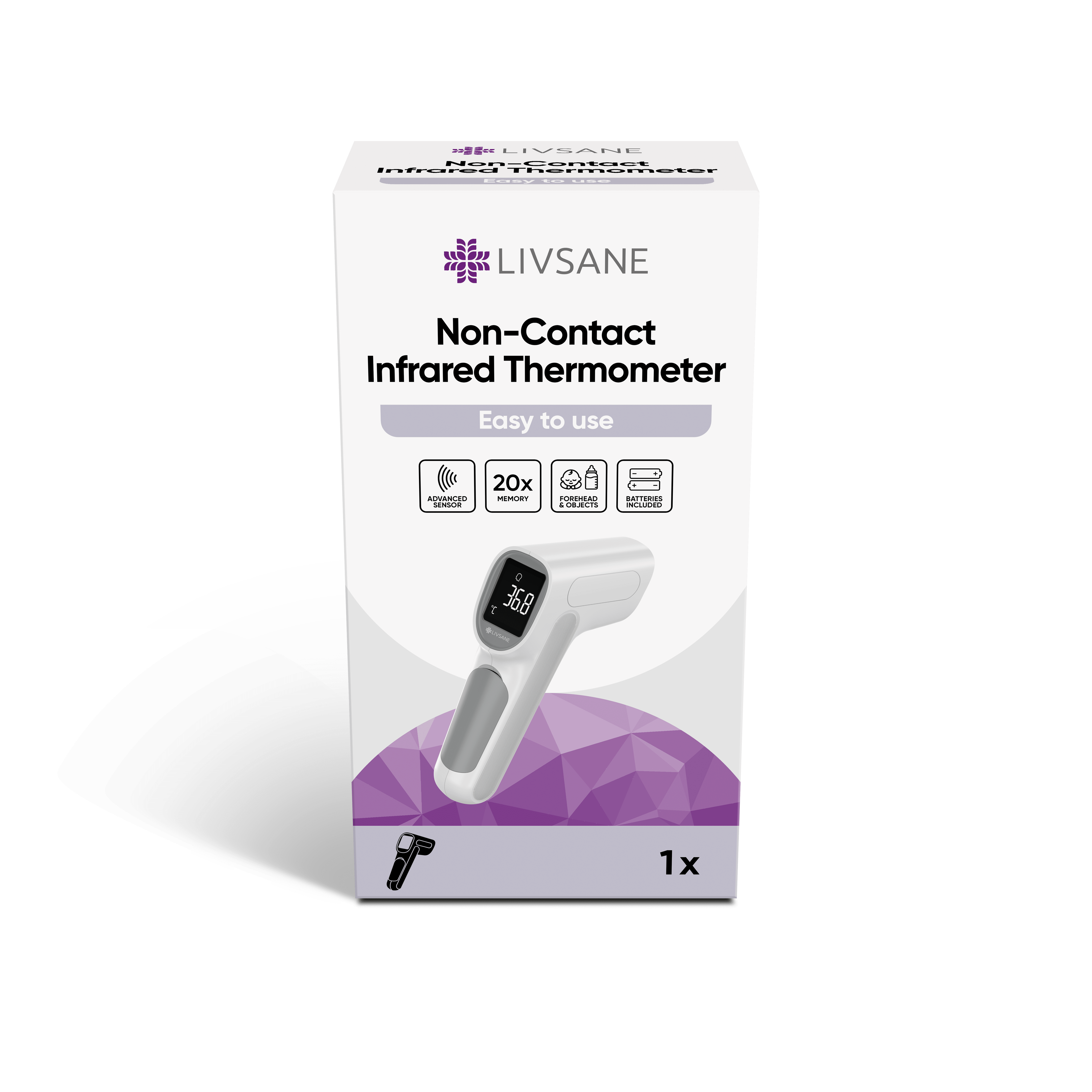 Otsmiku ja objektide temperatuuri mõõtmine. Kontaktivaba, multifunktsionaalne ja ergonoomiline disain. Lihtne kasutada ühe nupuvajutusega. Kohene mõõtmine 1 sekundi jooksul. Mälu funktsioon kuni 20 mõõtmist. Kõrgekvaliteediline infrapunaandur. Kuuldav ja visuaalne palaviku hoiatus. Mitmed režiimid (täiskasvanu / lapse / objekti režiim). LCD-ekraan. Madala aku indikaator. Automaatne väljalülitus, kui ei kasutata. Hügieeniline, lihtne puhastada. Komplektis patareid ja hoiukott.2-aastane garantii. Meditsiiniseade. • Hea ohutus• Passiivne infrapuna vastuvõtutehnoloogia• Kontaktivaba mõõtmine, väldib ristnakkust• Lihtne kasutada• Ergonoomiline disain• Ühe nupu mõõtmine• Kiire mõõtmine• 1-sekundiline mõõtmine• Kõrge täpsus• Täiustatud infrapunaandur, kõrge tundlikkusega• Automaatne temperatuuri kalibreerimine• 20 mõõtmise mälu• Palaviku hoiatus• Vahetamine ºC ja ºF vahel• Automaatne väljalülitus, energiasääst• Patsientide sihtrühm: otsmiku režiim sobib kõigile vanusegruppidele• Lapse režiim on soovitatav alla 12-aastastele