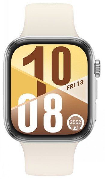 Arvutitark OÜ | Huawei Watch Fit 4, white Tootekood: 55020EYL GTIN: 6942103155024 Smartwatches / activity monitors Enriched Sports Modes Emotional Wellbeing Assistant Up to 10-Day Battery Life Sleek and ChicWear a wondrous watch that is sleek and stylish, at just 27 g, 9.5 mm thick, and marvel at its mesmerising 3D wing-like design.Bright. Bold. Beautiful.Feast your eyes on a vast 1.82 inches screen on your wrist, with bezel-less HD display and a whopping 80% screen-to-body ratio.Stick with StyleCreate custom sticker watch faces with timeless moments and priceless pets, so that the seconds tick by in your time.Fit with New FacesWith so many designs to choose from and customisable styles and features, you’ll never run out of ways to express yourself—it can be an emotion-themed pet, a work of art like Arctic Rays and Dusk Silhouette, or a DIY Gallery watch face.Soar to New Heights Watch Fit 4 is designed for the adventurous at heart, thanks to high-level data like altitude, accumulated ascent and air pressure supported by its powerful barometer. Get the storm warning with a powerful barometer that's sensitive to your environment, so that you're never caught by surprise. This watch packs a new and improved barometer, to provide advanced real-time data like accumulated ascent, cadence, distance, heart rate, calories burnt, real-time altitude, and route tracking during workouts. Relive all your outdoor adventures and find better training plans for the future, with the heart rate metric and route-tracking at your fingertips. Pinpoint Positioning Benefit from pinpoint positioning provided by the Huawei Sunflower Positioning System, which even recognises what activity you’re engaged in. Get reliable fitness data supported by pinpoint positioning, including location, distance, pace, and route, as well as personalised tips on how to unlock your full potential. Get your location that’s accurate down to the second, whether you’re going for a city run or a country hike. Stay on track at all times, with more stable positioning and timely voice-guided navigation, and enjoy safer and more seamless workouts from start to finish. Map your moves with colour route tracking that shows you where you’ve been and where you plan to go. You can even download or import routes ahead of time to keep on track and stay prepared even when you are offline. Make Waves in the Water First-ever water sport route tracking: Stay on course with real-time workout data, like route, speed, and distance, powered by reliable watch-based GPS tracking. Stay on top of your game with real-time fitness data, including speed and distance, and benefit from insightful post-workout summaries and routes that help you fine-tune your technique. Level Up Your FitnessExperience your favourite activities in a whole new way with customisable training plans, AI-enhanced coaching, and data-driven analysis for 100+ workout modes.More Features, Ready on Your WristRunning form analysis monitors advanced data like ground contact time balance and vertical oscillation, and provides tips to help you fine-tune your form and prevent injury.Huawei Health AppStarting a cycling session on the watch auto-launches the Huawei Health app and turns your phone into a bike computer. You can also enable the cycling feature in the Huawei Health app and see real time data on both devices.Stay Fit appTrack calories on both sides of the ledger with the Stay Fit app, now that logging meals on the watch is such a breeze with the new and improved food library. Have your calorie intake and deficit data counted for you.A Watch that Gets YouThe perceptive Emotional Wellbeing app to keep an eye on your emotions—pleasant, neutral, or unpleasant—and offer a next level of insights into your overall wellness.Emotional Wellbeing InsightsSee your emotions laid out for you by day, week, month, and year, and benefit from tailored sleep and fitness tips to keep body, mind, and soul well aligned.Stressed out or feeling down? Swipe left on the Emotional Wellbeing app screen to start a breathing exercise or workout, and put your mind and body at ease.Pulse Wave Arrhythmia AnalysisTake your cardiac health to heart, with timely alerts on potential A-fib and premature beat risks, powered by a high-performance PPG sensor and designated software.Wrist-based Health InsightsDelve into the Health Insights app, a first on the Huawei Watch Fit 4 Series, for next-level guidance on healthier lifestyles—from tips on managing stress, to advice on improving sleep and optimising workouts.Sleep HealthTrack how well you’ve slept and how well you’ve recovered from fatigue and stress, with new-found insights from the cutting-edge average sleep HRV metric and abnormal breathing alerts. Benefit from timely notifications whenever your physiological data strays from your personal range.Heart Rate and SpO2 at a GlanceStay on top of the beat, even when you’re running or exercising, and get timely, accurate heart rate and SpO2 readings by our best-in-house multi-channel module and smart fusion algorithm.Cycle CalendarEasily record your periods and track your cycles from start to finish through an intuitive calendar view, and receive period reminders and fertile window predictions to stay prepared for whatever’s coming.Health Records for the Whole FamilyCreate a Health community for loved ones and stay up to date with their heart rate, SpO2 levels, daily step count, and sleep quality from one easy place.Huawei Health +Experience the ultimate in digital wellness with Huawei Health+, and access a range of premium services from smart weight management coaching, to personalised diet planning and exclusive fitness classes.Everything Your Fingertips Voice Notepad: Need to jot something down fast? Just lift your wrist and speak your mind, then Huawei Watch Fit 4 will take care of the rest. Quick Message Replies: Respond right away with voice-to-text transcription and the fun emoticons literally at y