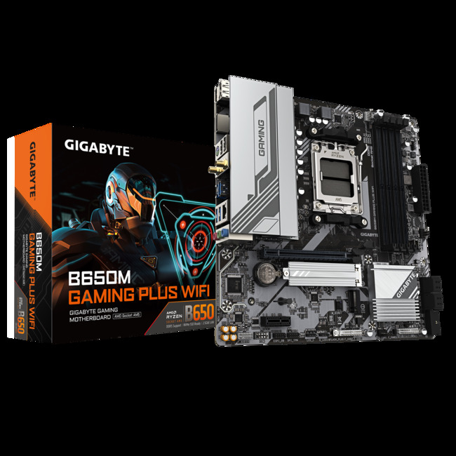 The GIGABYTE B650M GAMING PLUS WIFI motherboard is designed to cater to the demands of gamers and PC enthusiasts alike. It features a robust set of specifications including support for Ryzen processors, high-speed DDR5 memory, and multiple storage options with RAID support. The motherboard is built on the AMD B650 chipset, offering a balance of performance and features with a micro ATX form factor for wide compatibility with cases and components.With its advanced networking capabilities including 2.5 Gigabit Ethernet, Bluetooth 5.3, and Wi-Fi 6E, users can enjoy fast and reliable Internet connections, whether for competitive online gaming or streaming high-definition content. The inclusion of high-definition audio ensures an immersive sound experience, enhancing every game, movie, or music track.Moreover, the motherboard is engineered with GIGABYTE's renowned ultra-durable design, featuring high-end audio capacitors and Smart Fan 6 technology for superior cooling and longevity. Whether you're building a new PC or upgrading an existing system, the GIGABYTE B650M GAMING PLUS WIFI offers a solid foundation with a blend of performance, quality, and aesthetics.