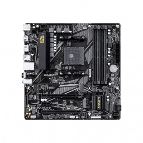 The GIGABYTE B550M DS3H R2 motherboard is designed with robust features and enhanced performance capabilities. Supporting AMD's Ryzen processors, this micro ATX motherboard is equipped with an AMD B550 chipset and offers four DIMM slots for DDR4 RAM, allowing for speeds up to 4600 MHz with overclocking. The onboard Realtek ALC1220 audio codec delivers high definition audio across eight channels, ensuring an immersive sound experience for gaming and multimedia applications. With multiple expansion slots, including PCIe 4.0 and 3.0 options, this motherboard provides opportunities for upgrades and configurations as needed. Connectivity is simplified with a variety of ports, including USB 3.2 Gen 1, HDMI, and DVI-D outputs, catering to various peripheral devices. The motherboard features two M.2 slots and four SATA ports, offering flexible storage options and RAID support for improved data management. Additionally, hardware monitoring capabilities such as CPU overheating protection and fan speed detection enhance reliability and efficiency. The GIGABYTE B550M DS3H R2 combines functionality and versatility, making it a choice for builders seeking performance in a compact form factor.