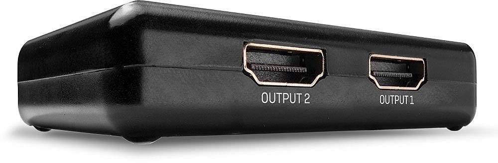 This HDMI splitter simultaneously distributes the image and sound of an HDMI source (such as a Blu-ray player. PS4) to two display units (such as a UHD TV or a projector). The splitter is compatible with HDMI 2.0 and supports ...