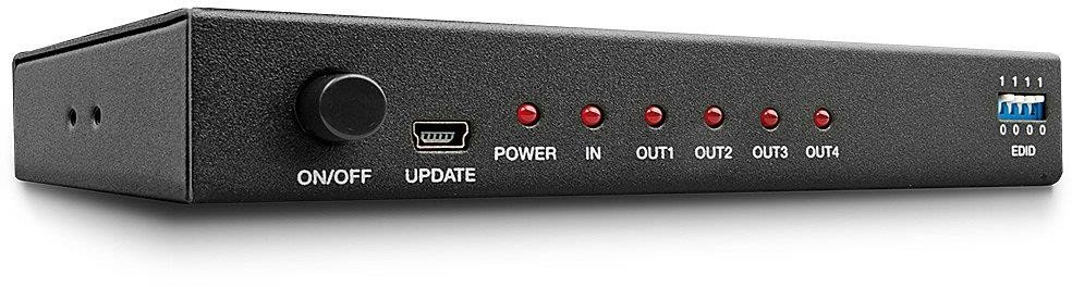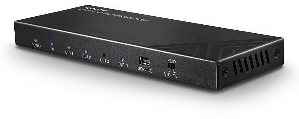 Split a single HDMI 2.0 source across 4 HDMI displays Supports resolutions up to 4K@60Hz 4:4:4, with additional support for HDR HDCP 2.2 support for enhanced compatibility EDID Management for hassle free installation 2 Year Warranty The Lindy 4 Port HDMI 18G Splitter is a compact, high quality solution for distributing HDMI 2.0 18G signals across multiple displays from one source device. With support for resolutions up to 4K 60Hz 4:4:4 8bit, this splitter is great for creating eye-catching digital signage in retail scenarios, showing high quality video in different rooms in medical facilities or ensuring audiences do not miss any of the action in dual display sports bars. Additional support for High-Dynamic Range ensures video content can be seen with enhanced brightness, superior contrasts and a much wider colour gamut, for more lifelike colour. The additional ability to cascade this splitter up to three further levels allows for an extended HDMI splitting experience, ideal for multi-screen situations such as informational broadcasting in airports, train stations or stock exchange offices. HDCP 2.2 support ensures there are no issues with a variety of 4K content when connected to source devices including set top boxes, Blu-Ray players and 4K HDR media players, while a smart EDID management switch on the unit provides maximum compatibility with the display. The splitters durable, compact design also ensures the unit can be installed discreetly, ensuring there is no distraction from the content on screen.