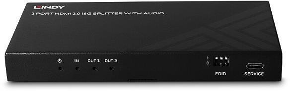 Split a single HDMI 2.0 source across 2 HDMI displaysSupports resolutions up to 4K@60Hz 4:4:4, with additional support for HDRHDCP 2.2 support for enhanced compatibilityEDID Management for hassle free installation2 Year Warranty The Lindy 2 Port HDMI 18G Splitter is a compact, high quality solution for distributing HDMI 2.0 18G signals across dual displays from one source device. With support for resolutions up to 4K 60Hz 4:4:4 8bit, this splitter is great for creating eye-catching digital signage in retail scenarios, showing high quality video in different rooms in medical facilities or ensuring audiences do not miss any of the action in dual display sports bars.The additional ability to cascade this splitter up to three further levels allows for an extended HDMI splitting experience, ideal for multi-screen situations such as informational broadcasting in airports, train stations or stock exchange offices.Additional support for High-Dynamic Range ensures video content can be seen with enhanced brightness, superior contrasts and a much wider colour gamut, for more lifelike colour.HDCP 2.2 support ensures there are no issues with a variety of 4K content when connected to source devices including set top boxes, Blu-Ray players and 4K HDR media players, while a smart EDID management switch on the unit provides maximum compatibility with the display.The splitters durable, compact design also ensures the unit can be installed discreetly, ensuring there is no distraction from the content on screen.