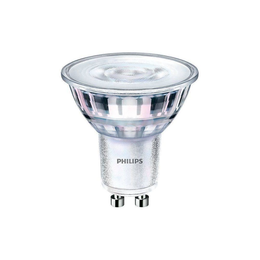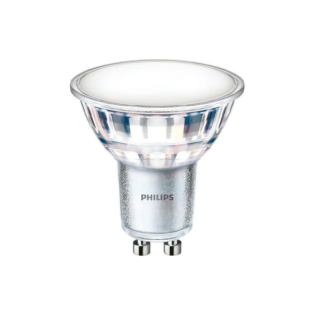 Philips LED lamp on võimsusega 5 W, mis on samaväärne 50-20-5 W hõõglambiga. Valgusti sokkel on GU10 ja värviesitusindeks >80 Ra. Lambi eluiga on 15000 tundi, valgusetemperatuur 2200-2500-2700 K ja valgusvoog 345 lm. Energiaklass on A+.