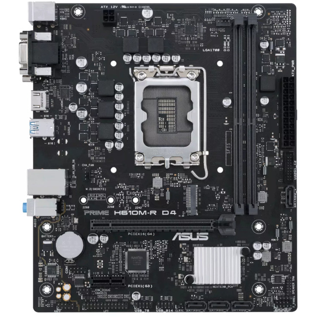 The ASUS PRIME H610M-K motherboard combines performance, connectivity, and durability to offer a solid foundation for building a powerful PC. Designed to support 12th and 13th Generation Intel Core processors, it enables users to leverage computing capabilities. With support for DDR5 memory and PCIe 4.0, it ensures fast data processing and expansion capabilities, making it suitable for gaming, content creation, and intensive multitasking. The motherboard is equipped with a range of connectivity options, including USB 3.2 Gen 1 and Gigabit Ethernet, facilitating a versatile setup with a wide array of peripherals. Enhanced with ASUS 5X Protection III, including robust power design and durable components, it provides reliability and longevity, ensuring that your investment is protected. Whether you're building a new PC or upgrading an existing system, the ASUS PRIME H610M-K offers a blend of performance, stability, and value.