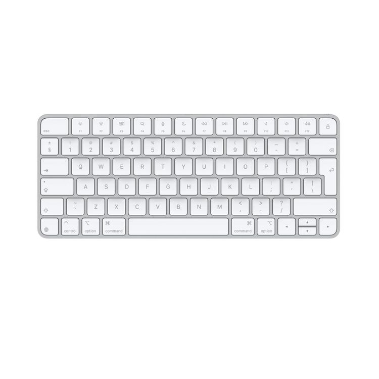Mugav juhtmevaba Apple klaviatuur Töötab Bluetooth ühenduse kaudu Madala profiiliga klahvid & SWE paigutus Touch ID kiireks ja turvaliseks autentimiseks Aku kestab kuu aega, USB-C ühendus