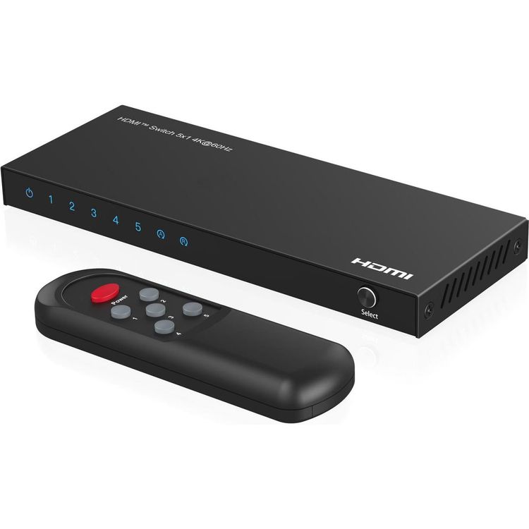 5-port HDMI switch Media-Tech presents a 5-port HDMI switch with support for TVs that support 4K technology. 5xHDMI SWITCH is used to switch the image from up to 5 different devices connected to the input ports of the switch. The switch will be useful when you want to connect several devices (e.g. console, laptop, set-top box, DVD, etc.) to a TV or monitor, but unfortunately has an insufficient amount of HDMI ports. Connect multiple devices 100% Automatic Device Plug and Play - No Drivers Required! To switch the image, you can use the button or the included remote control. Resolution support: 480p / 576p / 720p / 1080P / 2160P Audio support: DTS-HD / Dolby-trueHD / DTS / Dolby-AC3 / DSD 768MHZ / 10.2Gbps 3D video support 12bit color depth support