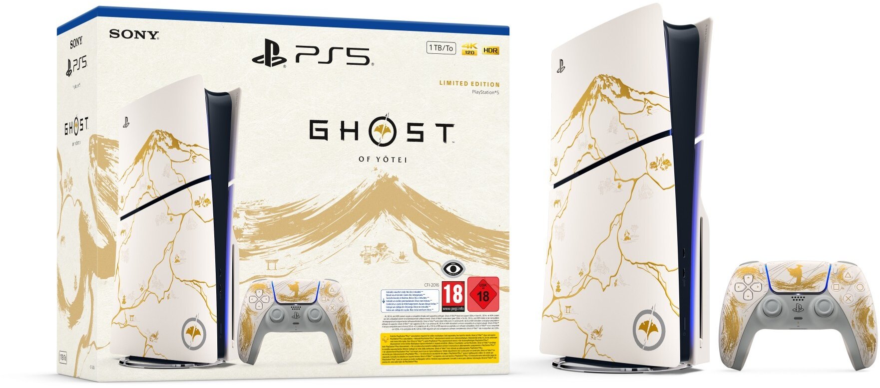 Explore every edge of the breathtaking lands around Mount Yōtei with the PlayStation®5 Console – Ghost of Yōtei Gold Limited Edition Bundle.Experience Atsu’s epic tale as it unravels across a stunning Japanese landscape on a console inspired by Atsu’s iconic mask. Like her fractured mask, Atsu bears the scars of the past, allowing what was once broken to endure. With her family slain, Atsu’s spirit is shattered—but she is not defeated. Join her as she rises, stronger and more resilient, to become a legendary warrior.PlayStation®5 Console – Ghost of Yōtei™ Gold Limited Edition Bundle includes:• Limited Edition PlayStation®5 console1• Limited Edition DualSense® wireless controller• Ghost of Yōtei™ full game voucher• 1TB SSD• Disc Drive3 (attached to the console)• 2 Horizontal Stand Feet• HDMI® cable• AC power cord• USB cable, printed materials, ASTRO’S PLAYROOM (Pre-installed game)About Ghost of YōteiDiscover a bold new tale of a warrior in Japan, driven by her own mission of vengeance.Set 300 years after the critically acclaimed Ghost of Tsushima, Ghost of Yōtei is a standalone experience placed in rural Japan in the 1600s. The story follows Atsu, a haunted, lone mercenary. Thirsty for revenge, she travels through the beautiful, rugged landscapes of northern Japan, hunting those who killed her family many years ago.Sixteen years after her family’s death, Atsu’s quest across Ezo leads her to unexplored lands in search of a gang of six outlaws, but she finds far more than just vengeance.Throughout her journey, Atsu will find unexpected allies and forge deeper bonds than she ever imagined.