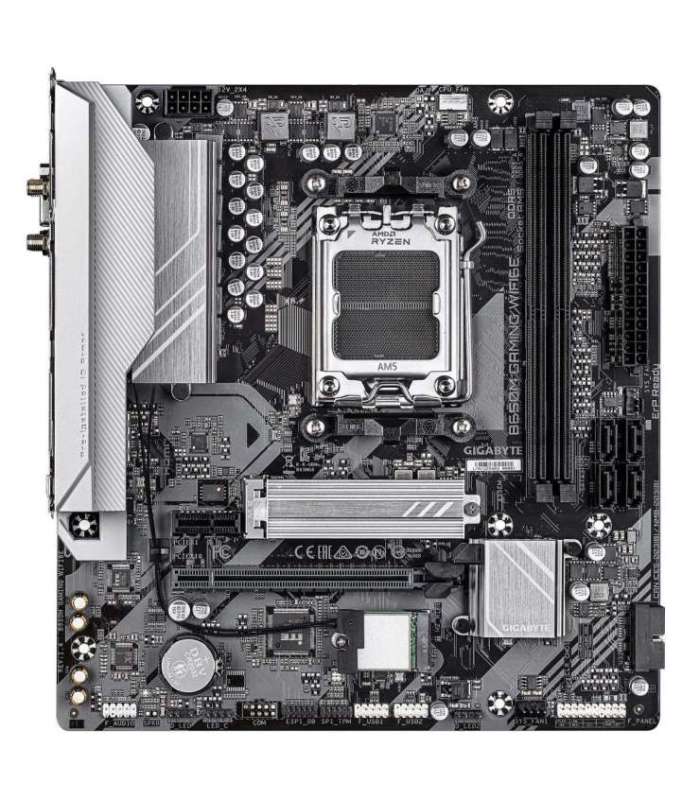 Rohkem AMD B650 | micro ATX | Audio 7.1 channels | CPU AMD | Socket Socket AM5 | Series AMD Ryzen 7000 Series/AMD Ryzen 8000 Series/AMD Ryzen 9000 Series | Supported memory types DDR5-SDRAM | 4xNumber of memory slots | Memory slots type DIMM | Supported storage drive interfaces M.2,PCI Express 4.0,SATA III | 4096 x 2160 pixels | 2xUSB 2.0 ports quantity | 3xUSB 3.2 Gen 1 (3.1 Gen 1) Type-A ports quantity | 1xUSB 3.2 Gen 1 (3.1 Gen 1) Type-C ports quantity | 1xEthernet LAN (RJ-45) ports | 1xHDMI ports quantity | Wi-Fi Yes | Bluetooth Yes | Antenna included Yes | Weight 1.44 kg