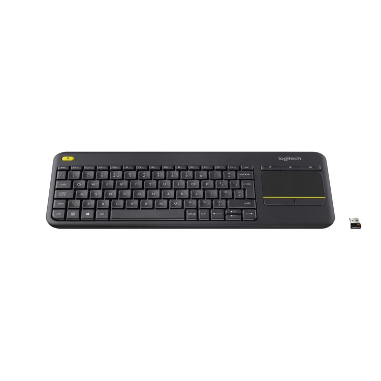 HTPC keyboard for computers connected to TVsEnjoy your favorite computer entertainment on your TV the way you want—without leaving your comfortable couch.Designed for convenient controlUsing computer-based entertainment on your TV should be simple. Relax and operate your PC connected to your TV while sitting on a cozy couch!Integrated wireless keyboard with touchpadEnjoy seamless computer-based entertainment on your TV without needing a separate keyboard and mouse. Convenient, quiet keys and a large 3.5-inch touchpad make navigation effortless.Wireless range of 10 m (33 feet)Watch movies, browse web pages, chat with friends, and more, without delays or interruptions. Fast response and reliable connection—even in a large room. Wireless coverage may vary depending on your environment and computer settings.Multimedia keyboard for TV screensThe K400 Plus is easy to use from the very start. The key layout is designed for relaxed media interaction.- Easily accessible volume controls and arrow keys.- Second left-click button makes navigation and selection with two hands easy.- Shortcuts for Windows® and Android™ users.- Quick access keys work right away with no configuration required.Plug and Play setupThe K400 Plus is very easy to set up. Just connect the small Unifying receiver to a USB port and start using it. The receiver lets you connect up to six Unifying devices to your computer.Compatible with multiple operating systemsDesigned for use with Windows® 7, Windows 8, Windows 10 or later, Android™ 5.0 or later, and Chrome OS™.18-month battery life- You can forget about changing batteries for a long time.- Virtually eliminates the hassle of battery replacement.- Using the power switch extends battery life even more.- Battery life was independently tested with two hours of use per day. Actual battery life will vary depending on use, settings, and environmental conditions.Customizable controlsUse the K400 Plus keyboard right out of the box, or personalize your keyboard and touchpad settings with Logitech Options™.