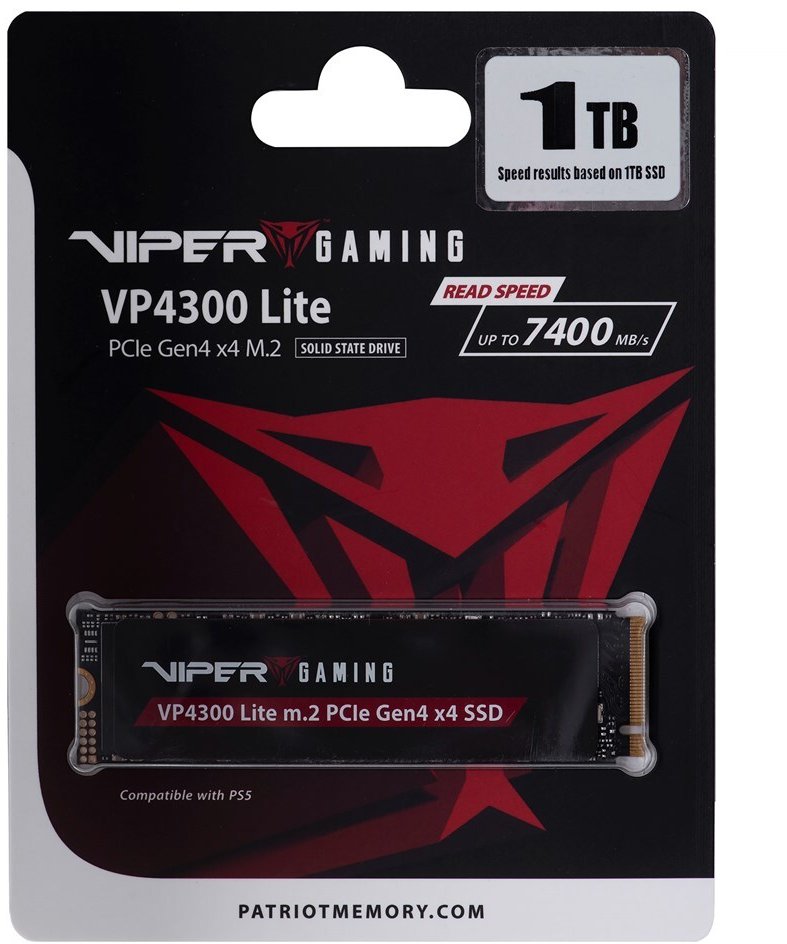 Viper VP4300 Lite The VP4300 Lite with the latest PCIe Gen4 x4 controller is fully NVMe 2.0 compliant and fully compatible with both PC and Playstation 5. It has a sequential read speed of up to 7,400 MB/s, a sequential write speed of up to 6,400 MB/s, and the PS5 sequential read speed is 6,100 MB/s and 1,600 TBW. The VP4300 Lite will blow away the competition every time. VP4300 Lite is built from world-class materials and has a high-performance, slim graphene thermal shield. It therefore offers the perfect combination of performance and safety and reliability ideal for every gamer.