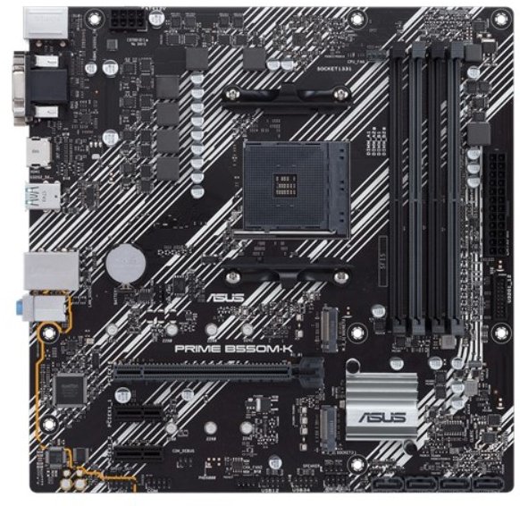 Rohkem AMD B550 (Ryzen AM4) Micro ATX Motherboard Dual M.2, PCIe 4.0, 1GbE, HDMI/D-Sub/DVI, SATA 6Gb/s, USB 3.2 Gen 2 Type-A AMD AM4 Socket: Compatible with 3rd generation AMD Ryzen processors Advanced cooling system: PCH heatsink and Fan Xpert 2+ software Ultra-fast connections: Dual M.2, PCIe 4.0, 1GbE, USB 3.2 Gen 2 Type-A 5X Protection III: Several hardware-based protections for complete system protection ASUS Prime Series motherboards are expertly engineered to unleash the full potential of 3rd Gen AMD Ryzen processors. With a solid power design, extensive cooling options, and smart tuning options, the Prime B550 Series motherboards provide daily PC users and builders with a host of customization options through intuitive software and firmware features. Customize your system A rich set of control options is the foundation of all ASUS Prime series motherboards. Prime B550 offers comprehensive tools to fine-tune every aspect of your system, allowing you to fine-tune the performance settings to perfectly suit the way you work - maximizing your productivity. UEFI BIOS The enhanced ASUS UEFI BIOS gives you everything you need to set up, customize and tune your system. It offers intelligently simplified options for people building a computer system for the first time, as well as advanced features for seasoned veterans. Advanced tuning options for experienced users UEFI's intuitive Advanced Mode puts you in complete control. The integrated search function makes it easy to find options, while the various advanced functions of this mode allow you to intelligently make complex adjustments. This allows you to adjust the performance exactly as you need it. Design to improve cooling Prime B550M-K features a set of hybrid fan headers and advanced cooling controls. Settings can be configured via Fan Xpert 2+ or UEFI BIOS to ensure low temperatures and system stability even under heavy loads. Build the system on a solid foundation Prime B550 offers all the essential features to accelerate your everyday productivity, keeping your system ready for action with consistent power, intuitive cooling controls, and flexible data transfer options. PCIe 4.0 M.2 (Max 64Gbps) Speed up with the built-in M.2 slot The M.2 PCIe 4.0 slot is compatible with drives up to 22110 format and supports RAID configured with NVMe SSDs - for an amazing performance boost. RAID drives with up to PCIe 4.0 bandwidth to enjoy the fastest data transfer speeds on the 3rd Gen AMD Ryzen platform. USB 3.2 Gen 2 Type-A The availability of multiple USB sockets allows you to create a high-end system packed to the brim with various peripherals. These also include 2 USB Type-A ports on the rear panel along with fast connectivity via USB 3.2 Gen 2 when used with a compatible case. Perfect sound All the integrated features together guarantee a great sound Smart design and premium hardware components combine to deliver sound quality you've never experienced before. Audio zone shielding It separates the analog and digital signal zones, significantly reducing multilateral interference. Separate zones for the left and right channels They guarantee that crosstalk between audio paths will be minimal. Premium grade capacitors made in Japan The high-quality components used ensure intense timbre and exceptional sound fidelity.
