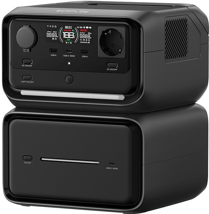 EcoFlow River 3 Max Plus Portable Power StationThe RIVER 3 Max Plus is a combination of the EcoFlow RIVER 3 Plus Power Station and an additional battery that provides a total capacity of up to 858 Wh. With an output power of up to 600 watts (or up to 1,200 watts in X-Boost mode), you can easily supply power to a wide variety of devices, and the use of next-generation GaN (gallium nitride) semiconductor ensures excellent power efficiency and lower heat loss. In addition, the lightweight and durable design makes the product great for traveling. Also noteworthy is the UPS function, which allows switching to emergency power in less than 10 ms.Seamless power supply for essential devicesThe RIVER 3 Max Plus station stands out with a power output of up to 600 watts, and thanks to the available X-Boost mode, it can also handle loads of up to 1200 watts. So you can easily plug in most of the devices you need, from smartphones and laptops to lamps and travel coolers.Take advantage of the benefits of GaN technologyRIVER 3 series devices use innovative GaN semiconductors, so they offer better performance than standard silicon-based devices. Gallium nitride provides high energy efficiency and excellent conductivity, in addition to minimizing the risk of equipment overheating and maintaining its compact size. An additional advantage of the technology used is quiet operation - the noise level of the RIVER 3 Max Plus model is only about 30 dB, which is about the same as that of a whisper or ticking clock. So you can freely use the station even at night!Several available outletsNeed to connect more devices to the station? No problem! The RIVER 3 Max Plus is equipped with three AC outlets with 600 watts (or 1200 watts with X-Boost), two USB-A ports with a total of 24 watts, one USB-C 100-watt port, one USB-C 140-watt port and one 12.6-volt 126-watt car outlet. So you can conveniently charge smartphones and laptops, use lighting and more!UPS emergency power supplyBe prepared for possible power outages. RIVER 3 Max Plus offers a UPS function that can switch to emergency power in less than 10 ms. Now you can easily take care of uninterrupted operation of your refrigerator or computer! What's more, when the station is close to being discharged, it can notify the NAS or PC server so that it has time to save data and safely shut down. Such a solution is great for the home office!Several charging optionsThe EcoFlow RIVER 3 Max Plus station can be charged in several ways. Using an AC outlet, you will charge it in just about 2.3 hours. About the same amount of time is enough with a power generator. It is also possible to connect the device to photovoltaic panels of up to 220 watts or a car charger. Such a solution is great for traveling! You can also charge the RIVER 3 Max Plus via USB-C. With so much flexibility, you can easily prepare the station to work in almost any circumstances!It will serve you for a long timeThe RIVER 3 Max Plus is equipped with a LiFePO4 battery that provides about 3,000 charging cycles (up to 80% of the original capacity). This translates into up to 10 years of use! Moreover, X-Guard technology guarantees reliable protection against overcharging, short-circuiting, overvoltage and other hazards. The battery is also distinguished by its IP54 rating - it is not intimidated by water or dust. The station is also drop-proof from a height of up to 1.5 meters - don't be afraid to damage it quickly.Convenient operationThe station is compatible with the EcoFlow app, which allows you to control it remotely. With its help, for example, you can check the charge level, power output and remaining run time, as well as adjust settings. You'll also receive useful notifications regarding power failures, for example. The RIVER 3 Max Plus also has a built-in color screen that provides convenient access to key information related to its operation.Large capacity, portable designThe capacity of the RIVER 3 Max Plus station is as high as 858 Wh, allowing it to power essential devices for a long time. At the same time, the product is surprisingly light and small - it weighs only about 10.3 kg, and its dimensions are 234 x 224 x 304 mm. So you can easily take it to the garden, to the camper or on a camping trip!IncludedRIVER 3 Max Plus power stationCable for charging from an AC outletCable for charging in the carUSB-B to USB-A UPS cableQuick start guide GeneralManufacturerEcoFlowModelRIVER 3 Max PlusCapacity858 Wh / 268800 mAhDimensions234 x 224 x 304 mmWeight10.3 kg BatteryTypeLFP (LiFePO4)LifetimeApprox. 3000 cycles (up to 80% capacity) OutputsAC3x 230 V ~50 Hz, 600 W max (up to 1200 W in X-Boost mode)USB-A2x 5 V = 2.4 A, 12 W per port, 24 W totalUSB-C1x 100 W 5/9/12/15 V = 3 A max, 20 V = 5 A max; 1x 140 W 5/9/12/15 V = 3 A max, 20/28 V = 5 A max.Car output1x 12.6 V, 10 A, 126 W max. InputsAC charging200-240 V, 3 A max, 50/60 Hz, 650 W, 0-100% in approx. 2.3 hrCharging with photovoltaic panels11-55 V, 13 A, 220 W max, 0-100% in approx. 4.8 h (45 W - 0-100% in approx. 23.5 h, 60 W - 0-100% in approx. 17.6 h, 110 W - 0-100% in approx. 9.6 h)Charging in the car11-55 V, 8 A max, 220 W max, 0-100% in approx. 9.6 hCharging with a power generator200-240 V, 3 A max, 50/60 Hz, 650 W, 0-100% in approx. 2.3 hCharging via USB-C5/9/12/15 V = 3 A max, 20/28 V = 5 A max, 140 W max, 0-100% in approx. 10.5 h OtherUPS< 10 msAdditional batteryB600 (572 Wh)ApplicationEcoFlow, Wi-Fi and Bluetooth connectionNoise levelApprox. 30 dBWaterproof classIP54 (only the battery, the whole station is not waterproof) Operating conditionsOptimal working temperatureFrom 20°C to 30°CCharging temperatureFrom 0°C to 45°CDischarge temperatureFrom -10°C to 45°CStorage temperatureFrom 20°C to 30°COperating altitude≤ 2000 m