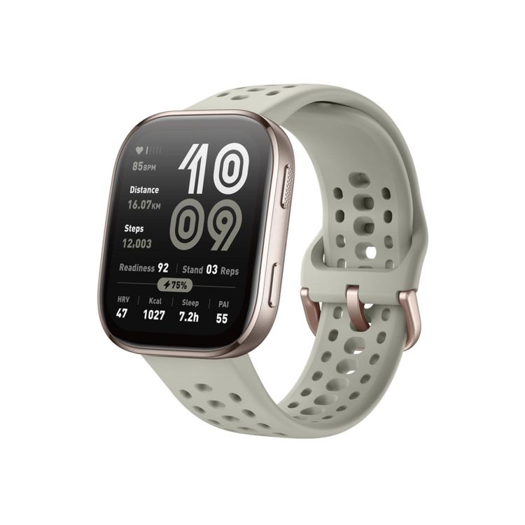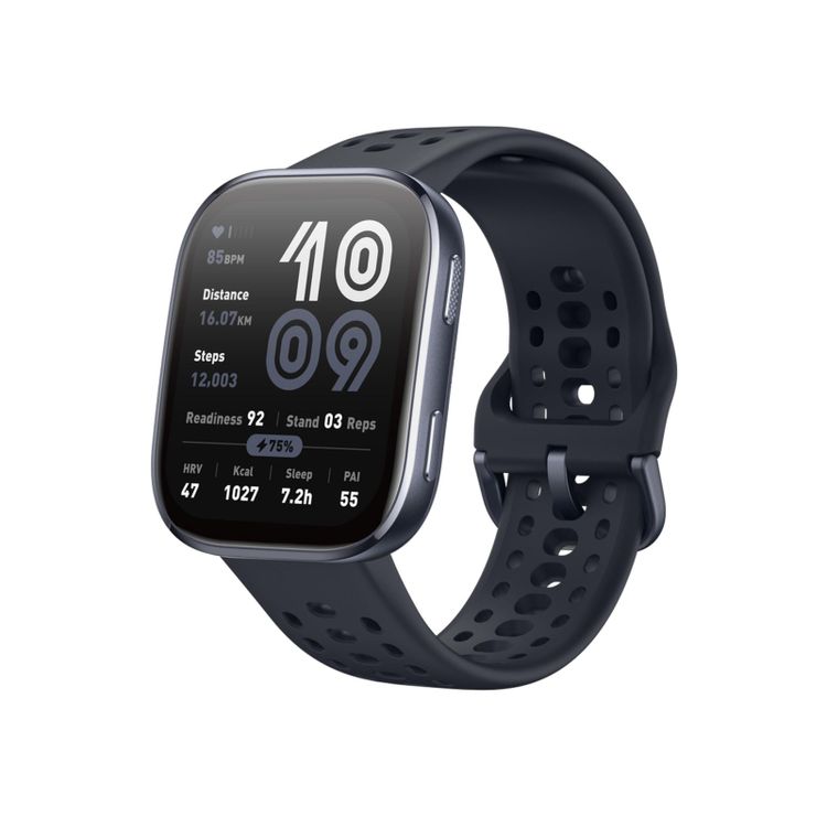 Vibrant 1.97" AMOLED DisplayEnjoy crystal-clear visibility with a bright and responsive display, ensuring effortless readability of your data, notifications, and maps - even under direct sunlight.24/7 Health MonitoringAmazfit's BioTracker technology provides precise, real-time monitoring1 of heart rate, sleep quality, blood-oxygen levels, and stress, empowering you with actionable insights to optimize your health and fitness.Over 140 Activity ModesTrack everything from running, cycling and swimming, to HYROX Race mode, while monitoring heart rate, steps, calories, pace, and more.Stay ConnectedMake and answer Bluetooth calls while receiving on-wrist notifications for texts and social updates. Zepp App, Powering AmazfitYour free companion for tracking nutrition and fitness progress, analyzing trends, and getting personalized health insights - all in one easy-to-use app.More Time, Less ChargingPower through your day with up to two weeks of battery life2 - no nightly charging needed.Keep Pushing Forward5 ATM water-resistance ensures resilience through every challenge - at the gym or on the go.Smart Strength TrainingPlan your workout in the Zepp App, sync it to your watch, and start Strength Training mode. Intelligent rep, set, and rest tracking, along with auto-detection of 25 exercise types, keeps you focused on your gains. Zepp CoachTrain smarter with personalized AI-driven workout plans that adapt to your performance and recovery. Choose from versatile training programs or specific running plans for 3K, 5K, 10K, half, and full marathons.Free Downloadable MapsDownload free maps for your outdoor activities, and get turn-by-turn directions as you go. Built-in GPS will accurately track your every move, with support from five satellite systems6 ensuring fast, reliable connection.Sleep & Health Tracking RestoreIQ: The new sleep tracking algorithm monitors your sleep with higher accuracy than the previous generation. Stay on top of your recovery with in-depth tracking of sleep quality, breathing, and stages, and even naps. Monitoring & Alerts: Monitor your heart rate, stress, blood-oxygen, and breathing rate on a 24/7 basis, and receive smart alerts for abnormal readings. One-Tap Measuring: Test your heart rate, stress level, blood-oxygen, and breathing rate simultaneously, for a quick overview of all four metrics in only 45 seconds. Recovery & Conditioning Readiness: Get an intuitive daily score that summarizes your mental and physical recovery, along with an insight on whether you should prioritize rest or activity today. Heart Rate Variability: See how your heart responds to life's stresses by tracking your sleep HRV—the time between heartbeats while you sleep. PAI Health Assessment: PAI uses your daily heart rate data to tally an ongoing score for the week. The more active you are, the higher the score. Achieving a weekly PAI score of 100 has been scientifically studied to lead to health benefits like reduced risk of hypertension. AI Assistance Total Voice Control: Zepp Flow gives you full control of your watch using just your voice10. Easily adjust settings, check your Zepp Coach progress, view your readiness score, and more - no tapping, swiping, or memorizing keywords needed. Message Replies: With Zepp Flow, you can type Android11 message replies using a full QWERTY keyboard or dictate them via speech-to-text input. Zepp Flow intelligently optimizes your reply with suggestions or translations and sends it seamlessly. New Notification Center: Catch your messages, news headlines, and sports updates, all in one place. Scroll through them with ease, or have Zepp Flow read them aloud to you. Women's Health Cycle Tracking: Get predictions and reminders for upcoming fertile and menstrual periods with the built-in Cycle Tracking feature. Plan ahead, stay active. Wild.AI: Turn your hormones into your superpower, with exercise, diet, and recovery recommendations from Wild.AI based on your menstrual and hormonal cycles. Connect12 to your Wild.AI account from your wrist, using Amazfit's exclusive mini app. Choose From Over 400 Free Watch FacesUpload your own photo as a custom watch face background, or head to the Zepp App and choose from over 400 free downloadable watch faces.Customize your display with different looks and data layouts anytime.Protect Your PrivacyCompatible with iOS and Android phones, the Zepp App ensures industry-leading data protection through Amazon Web Services (AWS) and GDPR compliance.You can even disable GPS location sharing in the Zepp App at any time, for enhanced privacy.