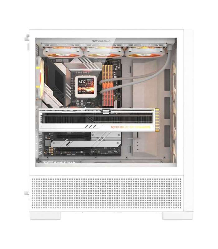 | Alfashop | DarkFlash AIRNOVA computer case (white) + 3 fans GTIN: 4711527007033 Arvutikorpused <h3>DarkFlash AIRNOVA computer case (white) + 3 fans</h3> <p>DarkFlash AIRNOVA is a spacious Big Tower case that supports E-ATX, ATX, M-ATX, and ITX motherboards, offering space for graphics cards up to 395 mm in length and CPU coolers up to 175 mm in height. It is equipped with ventilation panels with a large 5x5 mm mesh, 3 120 mm fans, and support for water cooling up to 420 mm. The top panel has all the necessary connectors: two USB 3.0 ports, HD Audio input, Power and Reset buttons, and a fast USB Type-C Gen2 (10 Gbps) connector, which significantly improves data transfer.</p> <p> (image) </p><h3>Effective cooling</h3> <p>AIRNOVA has been designed with an emphasis on free airflow. 5x5 mm ventilation grilles are located on six sides of the case, which supports effective heat dissipation. Inside, there is room for three 120 mm fans at the bottom, and a total of up to 10 fans can be installed. The case is also compatible with water cooling – a 420 mm radiator can be installed at the front and a 360 mm radiator at the top.</p> <p> (image) </p><h3>Practical mounting solutions</h3> <p>AIRNOVA offers a modular design with a quick-release system. All panels – including the fan frame, dust cover, and motherboard tray – are removable. This facilitates installation, cleaning, and access to components. In addition, there is 33 mm of space for cable routing at the rear, ensuring an aesthetic and tidy installation.</p> <p> (image) </p><h3>Dust protection</h3> <p>DarkFlash AIRNOVA is equipped with 4 dust filters that effectively protect the interior of the case from contaminants such as dust, hair, and fine pollen. The filters are made of densely woven nylon, which traps up to 98% of contaminants, significantly extending the life of the components and reducing the need for frequent cleaning. Each of the filters – located on the top, bottom, and side panels – is easy to remove thanks to magnetic clips and a slide-out system.</p> <p> (image) </p> <h3>Included</h3> <ul class="list-disc pl-5"><li>computer case</li><li>fan x3</li></ul> <div class="table-wrapper"> <p> </p> <h3></h3> <table> <tbody> <tr><th>Manufacturer</th><td>DarkFlash</td></tr><tr><th>Model</th><td>AIRNOVA</td></tr><tr><th>Case type</th><td>Big Tower</td></tr><tr><th>Motherboard standard</th><td>E-ATX, ATX, M-ATX, ITX</td></tr><tr><th>Power supply standard</th><td>ATX (bottom mounting)</td></tr><tr><th>Internal drive bays</th><td>2x SSD, 2x HDD / 1x SSD + 1x HDD</td></tr><tr><th>Expansion slots</th><td>7</td></tr><tr><th>Max power supply length</th><td>200 mm</td></tr><tr><th>Max graphics card length</th><td>395 mm</td></tr><tr><th>Max CPU cooler height</th><td>175 mm</td></tr><tr><th>Max number of fans</th><td>10</td></tr><tr><th>Fan mounting options</th><td>Front: 3x 120 mm / 3x 140 mm<br />Top: 3x 120 mm / 2x 140 mm<br />Rear: 1x 120 mm / 1x 140 mm<br />Bottom: 3x 120 mm</td></tr><tr><th>Water cooling mounting options</th><td>Front: 360 / 420 mm<br />Top: 360 mm</td></tr><tr><th>Number of installed fans</th><td>3</td></tr><tr><th>Buttons and controls</th><td>Power, Reset</td></tr><tr><th>Connectors</th><td>2x USB 3.0, 1x USB Type-C Gen2 (10 Gbps), HD Audio</td></tr><tr><th>Color</th><td>White</td></tr><tr><th>Height</th><td>538 mm</td></tr><tr><th>Width</th><td>238 mm</td></tr><tr><th>Depth</th><td>464 mm</td></tr> </tbody> </table> </div> | 80,43 € | Poodi | ||