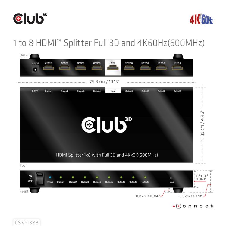 | Galador Grupp OÜ | Club3D HDMI Splitter 1 Eingang -> 8 Outputs 4K60Hz UHD retail (CSV-1383) Tootekood: CSV-1383 GTIN: 8719214472771 | 127,30 € | Poodi | ||