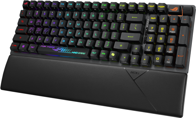 | Arvutitark OÜ | Asus ROG Strix Scope II 96 Wireless Gaming Keyboard DE Tootekood: 90MP037A-BKDA01 GTIN: 4711387140420 Keyboards ROG Strix Scope II 96 Wireless ROG Strix Scope II 96 Wireless gaming keyboard with tri-mode connection, streamer hotkeys, multifunction controls, hot-swappable pre-lubed ROG NX Snow & Storm mechanical switches, ROG keyboard stabilizers, PBT doubleshot keycaps and silicone dampening foam, three tilt angles, and wrist rest 96% layout: Retains all function and number keys in a more compact and efficient layout that frees up desk space, with a form factor that is only 1 cm wider than a standard 80% keyboard Tri-mode connection: Connect using Bluetooth® (up to three devices), 2.4 GHz with ROG SpeedNova wireless technology (up to 1500 hours of battery life) or wired USB Hot-swappable switches: Pre-lubed NX Snow linear switches and ROG NX Storm clicky switches with walled stem design to enhance keystroke stability and are tuned for great acoustics Sound-dampening foam with switch-dampening pads: Unique, integrated dampening foam with added switch-dampening pad structure absorbs pinging noises and echoes for improved keystroke acoustics Enhanced typing experience: Pre-lubed keyboard stabilizers produce less friction for smoother keystrokes and stability for longer keys; durable ROG PBT doubleshot keycaps or UV-coated ABS keycaps offer a premium feel and shine resistance* Hotkeys: F1–F5 keys are pre-programmed as hotkeys for Xbox Game Bar and recording Intuitive controls: Multi-function button and multiwheel for media playback, volume, and keyboard lighting ROG Omni Receiver: Connect to multiple supported devices wirelessly with a single receiver Unique ROG-themed space bar: UV-coated spacebar with special ROG markings and three underside RGB LEDs Ergonomic design: Three tilt positions and a detachable wrist rest | 216,10 € | Poodi | ||