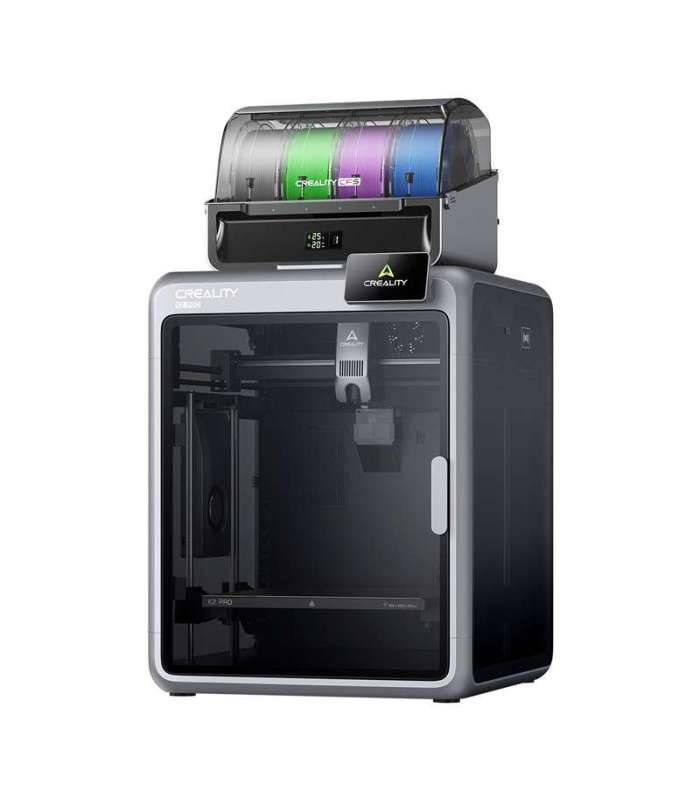| Alfashop | Creality K2 Pro Combo 3D Printer GTIN: 6977726810272 3D printerid <h3>Creality K2 Pro Combo 3D Printer</h3> <p>Creality K2 Pro is a premium 3D printer created for the most demanding users - enthusiasts, engineers or creatives who expect excellent quality, reliability and flexibility. It combines high printing speed (up to 600 mm/s), actively heated chamber, intelligent AI systems and the ability to work with several colors of filament simultaneously (after installing the CFS module). In addition, it offers automatic leveling and a large workspace - as large as 300 × 300 × 300 mm. All this creates a complete professional 3D printing tool. The kit includes not only the 3D printer, but also one CFS module.</p> <p> (image) </p><h3>Print in multiple colors and materials</h3> <p>The new CFS (Creality Filament System) module allows printing with several filaments simultaneously. With one unit, the printer supports four colors, and when four are connected, up to 16 colors or materials. The unit provides automatic filament recognition, precise management, auto-addition, moisture protection, as well as real-time temperature and humidity display. As a result, the K2 Pro allows you to create complex, colorful models without interruptions or material waste. Note: you will find one CFS module included. To use more colors and materials, purchase additional units.</p> <p> (image) </p><h3>High speed and precision printing</h3> <p>The K2 Pro achieves speeds of up to 600 mm/sec and acceleration of up to 20,000 mm/sec², which noticeably reduces working time while maintaining the highest reproduction quality. Step-servo motors on the X/Y axes and in the extruder, controlled by the FOC system, are responsible for smooth and precise movement. As a result, the printer runs extremely quietly and stably, and the surface quality of the models remains excellent - even at high speeds.</p> <p> (image) </p><h3>Professional extrusion system</h3> <p>The new direct extruder with filament positioning sensors ensures accurate material flow and feed control. It uses hardened steel gears capable of working with carbon fiber-reinforced filaments. A hotend with a flow rate of 40 mm³/s enables printing from a wide range of materials, while the modular design and magnetic cover facilitate quick head removal and maintenance.</p> <p> (image) </p><h3>Stable construction and precision mechanics</h3> <p>The printer's frame is made of durable aircraft-grade aluminum alloy, which guarantees rigidity and resistance to vibration. The steel X-axis guide features high precision and durability, and the dual Z-axis system supported by four linear rods ensures excellent stability of the work table movement without layer shifts. The result? Exceptionally smooth and consistent print surfaces!</p> <p> (image) </p><h3>Active heating of the working chamber</h3> <p>The K2 Pro maintains a stable temperature in the chamber (up to 60°C), which allows you to print from demanding filaments such as ABS, ASA, PPA or PPS without any problems. Heating the chamber eliminates the risk of distortion, and a small auxiliary fan improves layer adhesion, which is extremely important when creating technical and usable parts such as phone holders or cup holders.</p> <p> (image) </p><h3>Intelligent AI systems and automation</h3> <p>The K2 Pro is equipped with two AI cameras that monitor the printing process. A camera located on the nozzle regulates the flow of material in real time and detects potential blockages. The camera mounted in the chamber, on the other hand, controls the entire printing process, detects errors (for example, the spaghetti effect), checks the heating plate and enables the creation of time-lapse videos of the prints. Built-in automation systems also include intelligent table leveling. All this makes printing complex models easier and helps avoid the most common problems!</p> <p> (image) </p><h3>Extensive software ecosystem</h3> <p>Creality OS software provides full control over K2 Pro features, expert mode and the option to manage multiple filaments. And the completely redesigned Creality Print software offers more than 40 ready-made presets to match different materials, a 3MF multi-color mode, and LAN control of different printers. Also at your disposal is the Creality Cloud platform on your computer or smartphone, which gives you access to an extensive library of 3D models, cloud printing and an online community.</p> <p> (image) </p><h3>Comfort and safety of use</h3> <p>The printer is equipped with an air purifier that removes volatile organic compounds (VOCs) and has a built-in RFID reader for recognizing filaments. In addition, it supports Wi-Fi and Ethernet connectivity for fast data transfer. Also noteworthy is the 32GB internal memory, which allows for convenient management of large projects.</p> <p> (image) </p><h3>Large working area and simple operation</h3> <p>The working area of 300 × 300 × 300 mm allows you to print larger items or many smaller models at the same time. What's more, the printer is ready to use almost immediately after unpacking and installing the touchscreen. Just use the short guide and automatic calibration to quickly move on to creating a variety of projects!</p> <p> (image) </p> <h3>Included</h3> <ul class="list-disc pl-5"><li>Creality K2 Pro 3D printer</li><li>CFS module</li></ul> <div class="table-wrapper"> <p> </p> <h3></h3> <table> <tbody> <tr><th>Manufacturer</th><td>Creality</td></tr><tr><th>Name</th><td>K2 Pro Combo</td></tr><tr><th>Model</th><td>1202080047</td></tr><tr><th>Working field</th><td>300 × 300 × 300 mm</td></tr><tr><th>Device dimensions</th><td>445 × 477 × 573 mm</td></tr><tr><th>Weight</th><td>23.7 kg</td></tr><tr><th>Maximum printing speed</th><td>600 mm/sec</td></tr><tr><th>Maximum acceleration</th><td>20,000 mm/s²</td></tr><tr><th>Maximum nozzle temperature</th><td>300°C</td></tr><tr><th>Maximum table temperature</th><td>110°C</td></tr><tr><th>Maximum chamber temp