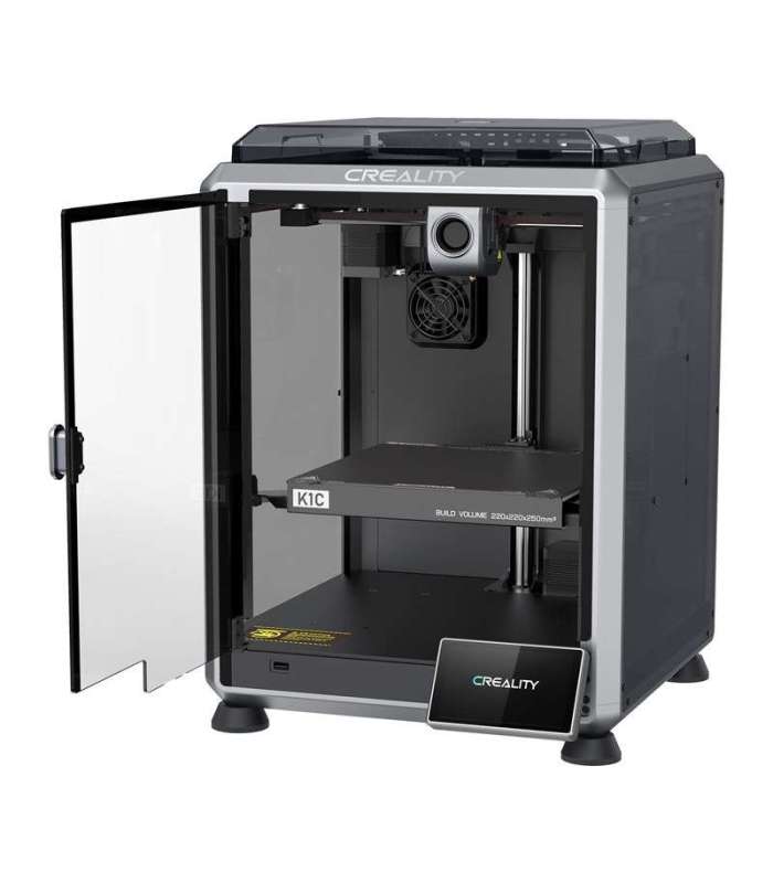 | Alfashop | Creality K1C 2025 3D printer GTIN: 6977726811729 3D printerid <h3>Creality K1C 2025 3D Printer</h3> <p>The Creality K1C is an advanced 3D printer that has been pre-assembled and calibrated at the factory - it takes just 3 minutes to start the first print. It has an enclosed work chamber measuring 220 × 220 × 250 mm, which provides a stable environment for working with more difficult filaments. A built-in extruder with an anti-clogging kit reduces the risk of failure. The whole thing runs under the powerful Creality OS operating system.</p> <p> (image) </p><h3>Jam-free printing - new generation extruder</h3> <p>The K1C uses a robust extruder with an improved clamping mechanism that ensures stable filament feeding. This enables more than 1,000 hours of continuous printing without clogging. The interchangeable "Unicorn" nozzle, made of copper, steel and titanium, allows for quick replacement. It also blocks unwanted heating of the filaments at the top of the head, preventing material flow problems.</p> <p> (image) </p><h3>Cooling on three levels</h3> <p>The Creality K1C uses an advanced triple cooling system to take care of the quality of each print. The first fan at the head reduces heat creep by cooling the filament before it reaches the nozzle. The second is responsible for quickly curing the print immediately after layer application, improving adhesion between layers. The third fan, located in the chamber, takes care of even cooling of the entire model.</p> <p> (image) </p><h3>Supports carbon fiber filaments</h3> <p>The printer works well with technical materials such as PLA-CF or PET-CF, which are reinforced with carbon fiber. These filaments are used in the production of parts subjected to mechanical stress and elevated temperatures. K1C reaches up to 300°C, which allows it to work with filaments that are more difficult to process. The flexible PEI plate improves adhesion of the first layer and makes it easier to remove finished models.</p> <p> (image) </p><h3>Automated and fast</h3> <p>The calibration process on the K1C comes down to a single click. The printer automatically aligns the table, sets the Z-axis and performs shape tests. The touchscreen interface resembles a smartphone screen in operation, making the device easy to use. The K1C achieves an impressive print speed of up to 600 mm/s while maintaining high quality. The maximum acceleration is as high as 20,000 mm/s², making it one of the fastest printers in its class. It owes this to its lightweight CoreXY design and rigid die-cast frame.</p> <p> (image) </p><h3>Built-in AI camera</h3> <p>The integrated AI camera actively monitors printing progress. It can detect phenomena such as so-called spaghetti, or tangled filament, or the presence of foreign objects on the table. If there is a problem, printing is automatically stopped and the user is notified. The camera is also suitable for remote viewing and creating impressive timelapse images of the printing process. This is a practical solution for those who want to have control over printing from anywhere.</p> <p> (image) </p><h3>Thoughtful design and user comfort</h3> <p>Closed chamber with transparent walls allows you to observe the printing process in real time. A built-in activated carbon filter reduces odors and cleans the air of particles emitted from hot filaments. The quiet mode allows the printer to operate with a volume not exceeding 45 dB. Every detail of the printer has been taken care of, from vibration-reducing shock absorbers to a reinforced cable guide. You'll also find a silicone strip for cleaning the nozzle, dampened hinges and an anti-splash film on the door. The printer also has room for a side spool holder and many ready-made accessories available as 3D models.</p> <p> (image) </p><h3>Error handling and serial printing</h3> <p>When one of the models in a batch print fails, the K1C allows you to simply skip it - without interrupting the entire batch. The feature is available in the Creality Print software and enables faster and more efficient management of large projects. The feature will also soon be available in Creality OS.</p> <p> (image) </p><h3>Creality ecosystem</h3> <p>The Klipper-based Creality OS offers advanced features like vibration compensation and advanced filament flow control. You can modify it at will or join an active software community. With the Creality Cloud app, you gain access to a library of 3D models, the ability to print remotely from the cloud and contact with other users. The whole thing is also supported by Creality Print software, which combines the functions of a program for preparing models for printing with the management of multiple 3D printers. This makes the entire process - from design to finished print - fully automated and convenient.</p> <p> (image) </p> <div class="table-wrapper"> <p> </p> <h3></h3> <table> <tbody> <tr><th>Manufacturer</th><td>Creality</td></tr><tr><th>Model</th><td>K1C 2025</td></tr><tr><th>Printing technology</th><td>FDM</td></tr><tr><th>Working surface</th><td>220 × 220 × 250 mm</td></tr><tr><th>Product dimensions</th><td>355 × 355 × 482 mm</td></tr><tr><th>Weight</th><td>12.4 kg</td></tr><tr><th>Printing speed</th><td>Up to 600 mm/sec</td></tr><tr><th>Acceleration</th><td>up to 20,000 mm/s²</td></tr><tr><th>Printing accuracy</th><td>100 ± 0.1 mm</td></tr><tr><th>Layer height</th><td>0.1 - 0.35 mm</td></tr><tr><th>Extruder</th><td>Direct dual drive</td></tr><tr><th>Filament diameter</th><td>1.75 mm</td></tr><tr><th>Nozzle diameter</th><td>0.4 mm</td></tr><tr><th>Nozzle temperature</th><td>up to 300°C</td></tr><tr><th>Heating table temperature</th><td>up to 100°C</td></tr><tr><th>Working surface</th><td>Flexible PEI plate</td></tr><tr><th>Leveling system</th><td>Automatic leveling</td></tr><tr><th>File transfer</th><td>USB, Wi-Fi</td></tr><tr><th>Screen</th><td>4.3" color touch screen</td></tr><tr><th>Supported filaments</th><td>ABS, PLA, PETG, PET, TPU, PA, ASA, PC, PLA-C