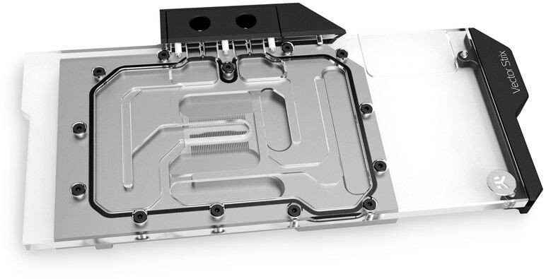 EK-Quantum Vector Strix RX 6800/6900 is a 2nd generation Vector GPU water block from the EK® Quantum Line. It is made for ROG Strix RX 6800, 6800XT, 6900XT graphics cards based on the latest AMD® RDNA2™ architecture. EK-Quantum Vector Strix RX 6800/6900 water block for ROG Strix GAMING RX 6800 and 6900 GPUsEK-Quantum Vector RX 6800/6900 water block is compatible with ASUS® ROG Strix GAMING Radeon RX 6800, RX 6800XT, and 6900XT graphics cards. The Vector water block directly cools the GPU, VRAM, and the VRM (voltage regulation module) as a cooling liquid is channeled right over these critical areas. The water block is in contact with power stages as well as Inductor chokes to maximize cooling and minimize the chances of coil whine. These newly developed water blocks feature optimized flow paths that reduce hydrodynamic instabilities and vortexing (dead spots) inside of them. The EK-Quantum Vector Series water blocks use an Open Split-Flow cooling engine design, which proved to be a superior solution for GPU water blocks. It is characterized by low hydraulic flow restriction, meaning it can be used with weaker water pumps or pumps running on low-speed settings, and still achieve top performance. The jet plate and fin structure geometry have been optimized to provide even flow distribution with minimal losses and optimal performance when used in any given coolant flow orientation. The base of the block is CNC-machined out of high-grade nickel-plated electrolytic copper, while its top is CNC-machined out of glass-like cast Acrylic. These 2nd generation Vector GPU water blocks also feature acetal terminals. The watertight sealing is ensured by high-quality EPDM O-rings, while brass standoffs are already pre-installed and allow for a safe and easy installation procedure. D-RGB lighting on EK-Quantum Vector Strix RX 6800/6900 D-RGB water blockThe aesthetic end-piece is housing the addressable D-RGB LED strip. These water blocks boast a total of 9 individually addressable RGB LEDs, and a LED-lit terminal. They are compatible with popular RGB sync technologies from all major motherboard manufacturers. The arrow marking on the 3-pin D-RGB LED connector is to be aligned with the +5V marking on the D-RGB (addressable) header. Backplate for the Strix 6800/6900 water blockEK recommends the purchase of a retention backplate, which improves the overall aesthetics of your graphics cards, and also provides additional passive cooling for the GPU core and backside of the printed circuit board VRM and VRAM sections. Technical Specification Dimensions: (LxHxW) - 300.5x157x19.5mm Enclosed EK-Quantum Vector Strix RX 6800/6900 series high-performance water block Mounting mechanism with screw-in brass standoffs Necessary mounting screws, nuts, and washers 2x Nickel plated brass plug G1/4” EK-Loop Multi Allen Key (6mm, 8mm, 9mm) Thermal pads Thermal grease EK-TIM Ectotherm (1g)