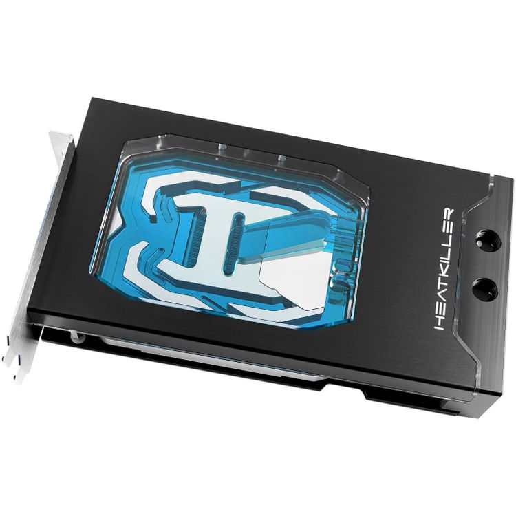 HEATKILLER V PRO graphics card coolers for Nvidia's RTX 4090 Founders Edition were specially developed to cope with the high power dissipation of 450 watts and more. In order to ensure a correspondingly high increase in performance, we opted for a modular high-performance base plate. Proven technologies such as the dual-layer airflow and the symmetrical cooling design have also been incorporated. The result in the form of the HEATKILLER V PRO series is impressive both visually and in terms of performance. Key points of the HK V PRO series: High performance base plate Selected high-performance thermal pads on GDDR6X RAM Dual layer inflow Symmetrical cooling design Design-integrated connection threads in the terminal Screwless design Insulating spacers made of high-performance plastic (Peek) CNC cut thermal pads Modular high-performance base plate In order to increase the cooling performance in the area of the GPU core, we have integrated a modular high-performance base plate into the heat sink. This ensures significantly higher cooling performance than a monolithic design thanks to finely slotted fins and the resulting increase in the cooling surface. We have chosen the fin structure in such a way that, in addition to increasing the performance of the GPU core, the flow is also kept high. All distances to heat-relevant components have been kept small, which means that the heat from thermal problem areas such as GDDR6X RAM and voltage converters is ideally dissipated. The PEEK spacers made from high-performance plastic ideally insulate the cooler from the circuit board and make installation easier. The legendary Kryonaut thermal paste from Thermal Grizzly ensures the best possible heat transfer. Dual layer inflow and symmetrical cooling design The dual-layer inflow, like the symmetrical cooling design, can also be found in the PRO version of our HEATKILLER V GPU cooler. The increased inflow is particularly important for the high-performance base plate. The splitting of the water into two levels ensures better flow through the cooler. The wide and symmetrical flow paths optimize the flow and thus the general performance of the HEATKILLER V Pro cooler. Selected high-performance thermal pads for GDDR6X Our development department has invested a lot of time in finding the ideal thermal pads for the hot GDDR6X RAMs. We have found a thermal pad that significantly reduces the temperatures around the GDDR6X RAM compared to the very good standard pads. Design-integrated side connection threads Another innovation is the connection threads integrated into the side of the terminal. Together with the screwless cover and the backplate included in the package, the result is a cooler that looks like a single unit. In order to achieve the best possible appearance, the HK V PRO was designed so that no electronic components of the circuit board are visible. Backplate in package The new cooler design relies on assembly including a backplate. In our case, the black backplate ensures improved distribution of forces around the cooling block. In addition to an impressive look, this also results in better temperatures. Made in Germany Production is carried out with the greatest care on our state-of-the-art CNC machinery in Waren an der Müritz. Many work steps are carried out by hand and each product is completed according to the four-eyes principle. Made in Germany, as you would imagine. Technical data: Base plate material: electrolytic copper nickel-plated Lid material: ACETAL Material connection terminal: Acetal Dimensions: (LxWxH): 220 x 124 (incl. terminal) x 32.8mm (incl. backplate) Connection: 4x G ¼ inch (DIN ISO 228-1) Approved up to 1 bar Compatibility: NVIDIA GeForce RTX 4090 Founders Edition Scope of delivery: 1 x HEATKILLER® V PRO ACETAL 1 x HEATKILLER® V PRO backplate black 1 x Dual Slot Bracket 1 x mounting material 1 x Thermal Grizzly Kryonaut thermal paste Chip manufacturer: NVIDIA for GPU chip series:GeForce® RTX 4090 Base material: nickel-plated copper Upper material:ACETAL
